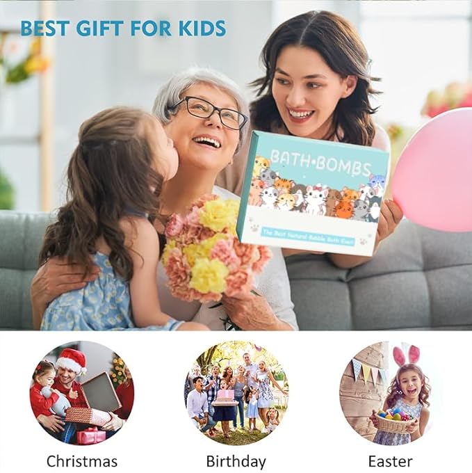 - 【BEST GIFT FOR KIDS】Our bath bombs come in a specially designed exquisite packaging box, the bath balls are rich and bright in color, with cute sea and land animal toys built in. It makes a unique birthday gift, holiday gift, bath toy, and party favor for kids.