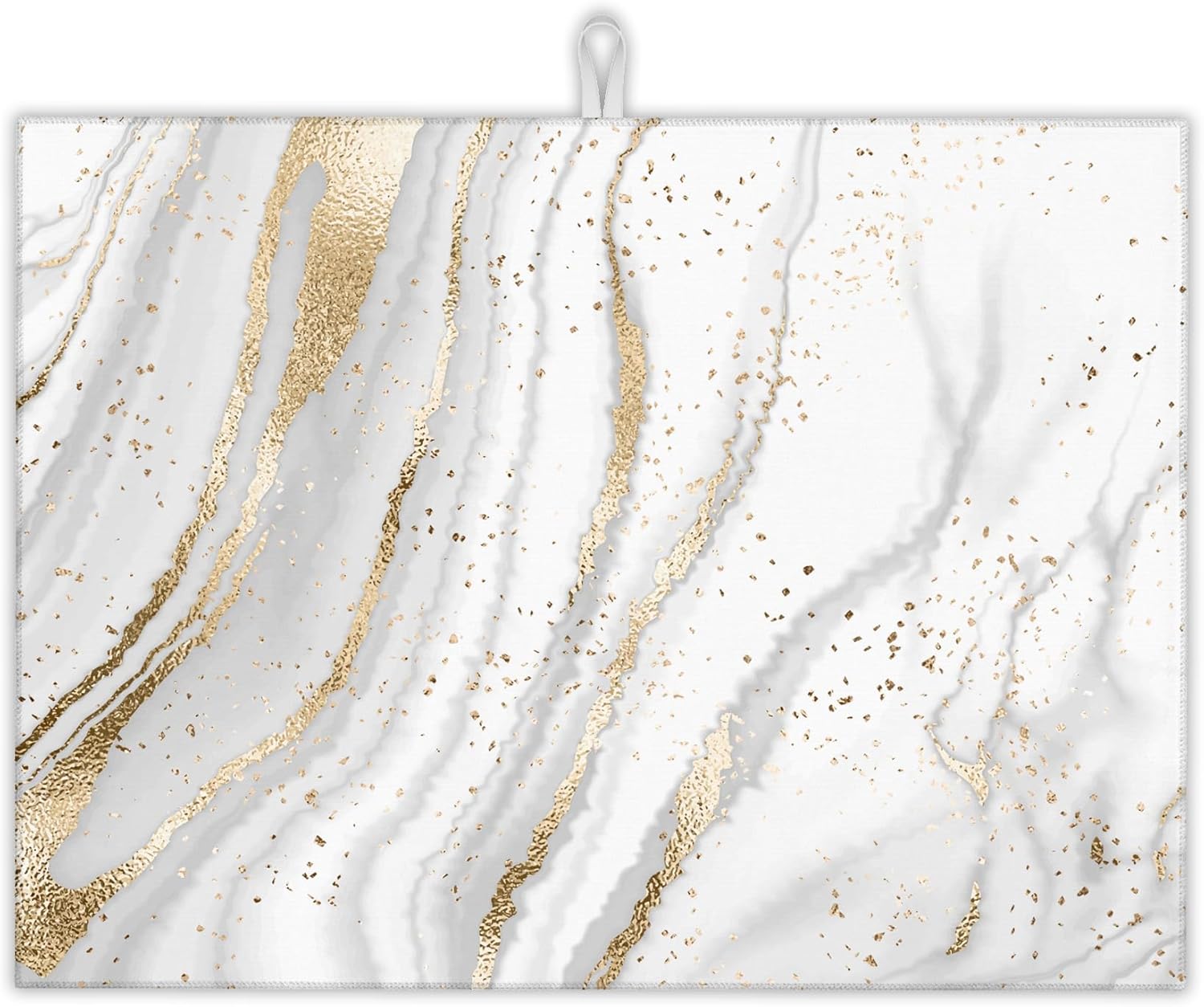 White Gold Marble Dish Drying Mats 18x24 Inch, Dish Pad Drying Rack Mat for Kitchen Counter Ultra Absorbent Microfiber Dishware Coffee Maker Bar Countertop Decor