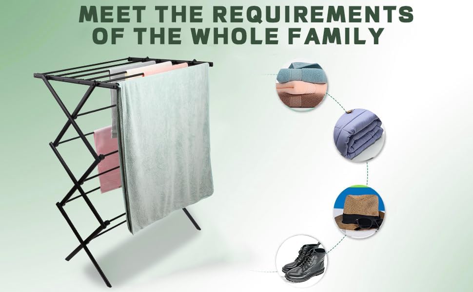 - Ample Drying Space: Wide layers of drying space will provide you with enough space to meet your daily needs. This large folding drying rack easily handles anything from sweats & jeans to beach towels, blankets & bedding