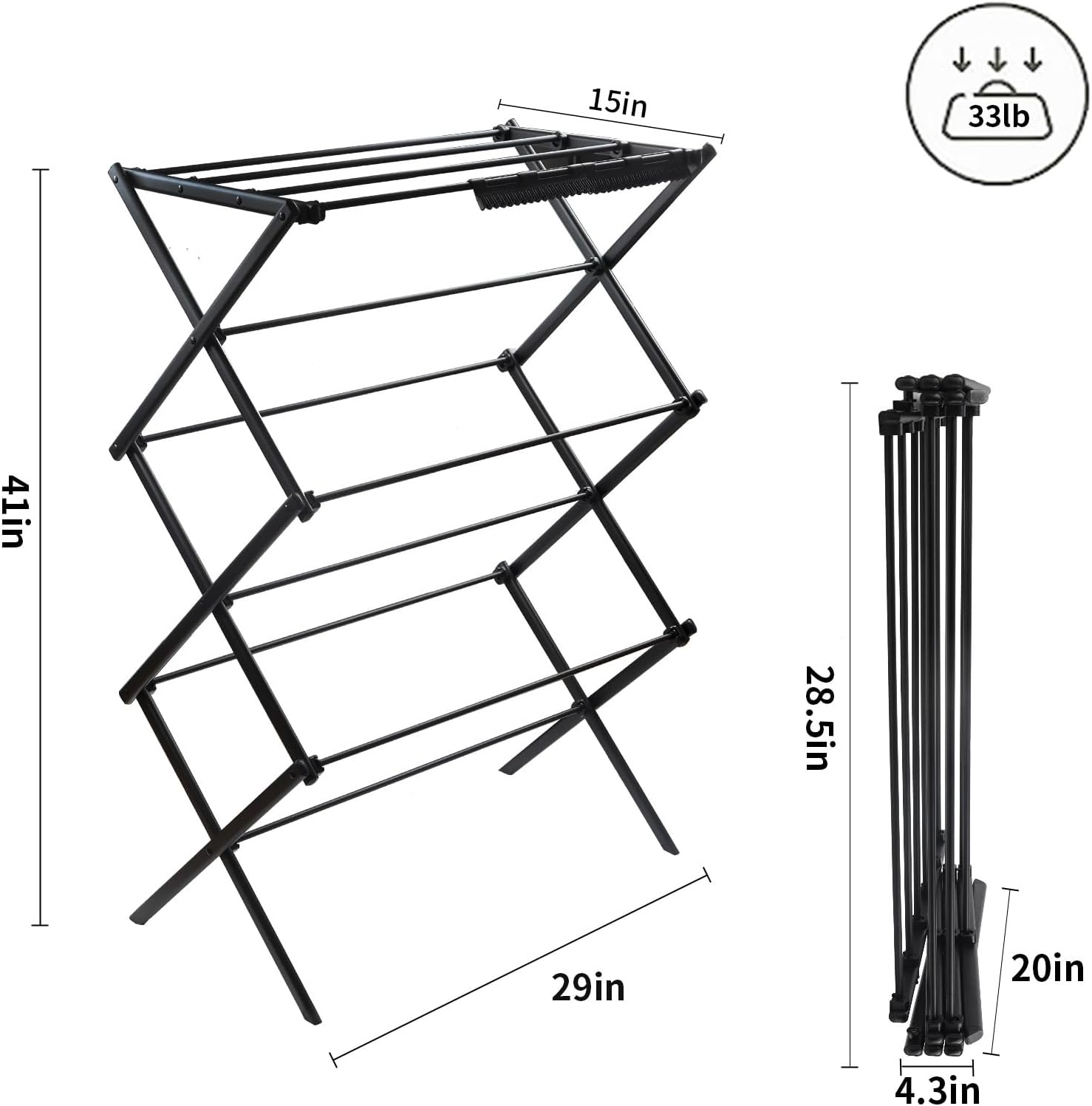 - With Strong Support: At 41 inches high x 28.8 wide x 15 deep (expanded), stable enough to hold up to 33LBS weight capacity and avoid collapsing or toppling over easily