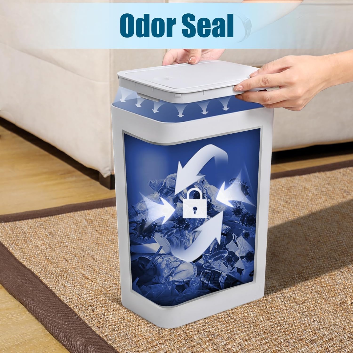 - Keep Smell In: The lid can fit well so there are no odor escapes from the trash can. You can say goodbye to unpleasant smells with our trash can
