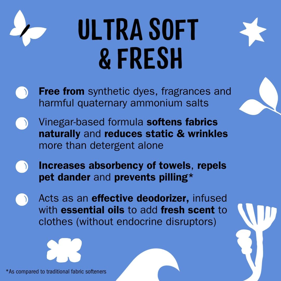 • SOFT, STATIC FREE CLOTHES: Unlike traditional fabric softeners that can deposit residues on clothes, Molly’s Suds vinegar-powered Fabric Softener uses simple ingredients (no harmful quaternary ammonium compounds!) to leave clothes feeling fresh, cozy, and comfy. Ideal for sensitive skin, the planet, and all washing machines. Our clean formula reduces static and wrinkles more than detergent alone, so you and your family can look and feel your best.