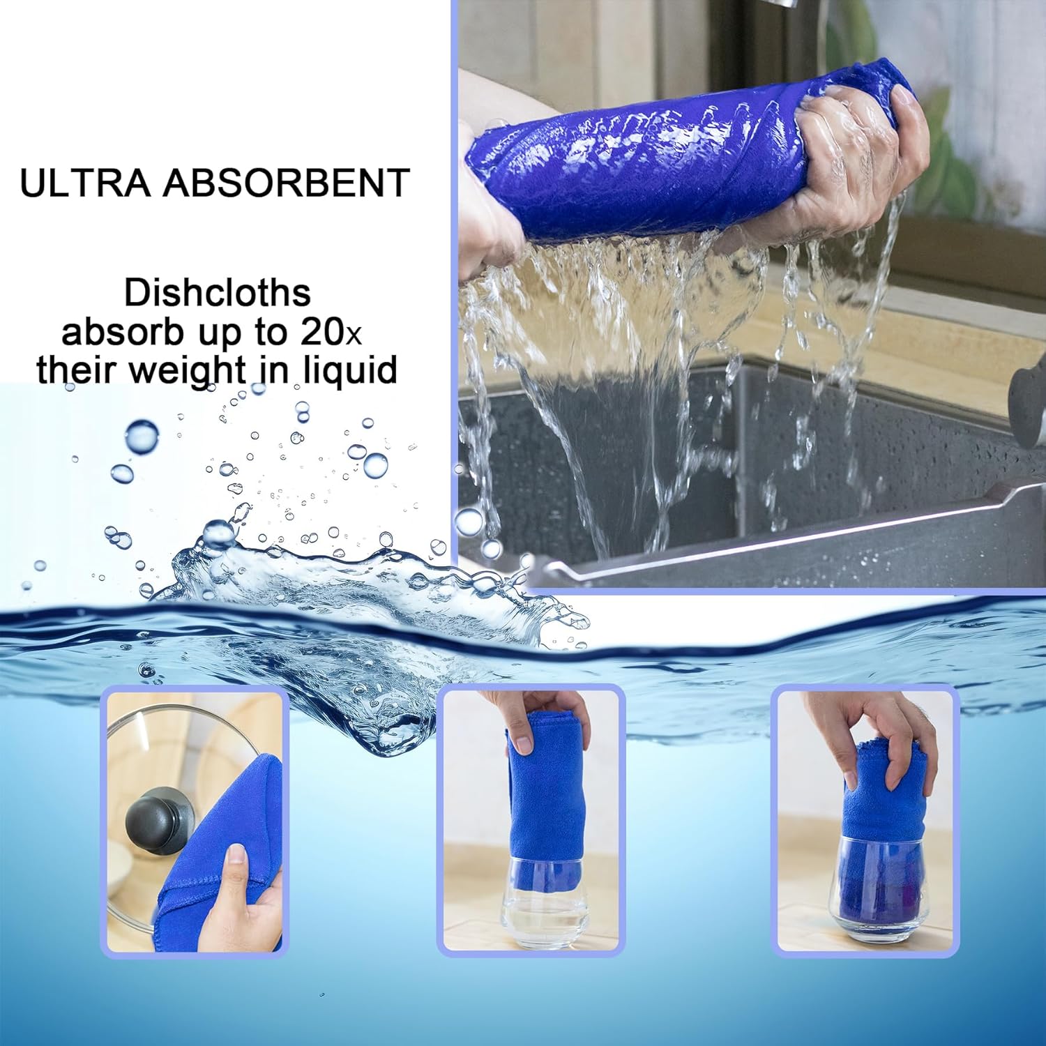 kimteny 13x28 Inches Kitchen Cloth Dish Towels, 400 GSM Premium Dishcloths, Super Absorbent Coral Velvet Microfiber Cleaning Cloths, Fast Drying Rags for Washing Dishes (8 Pack, Blue)