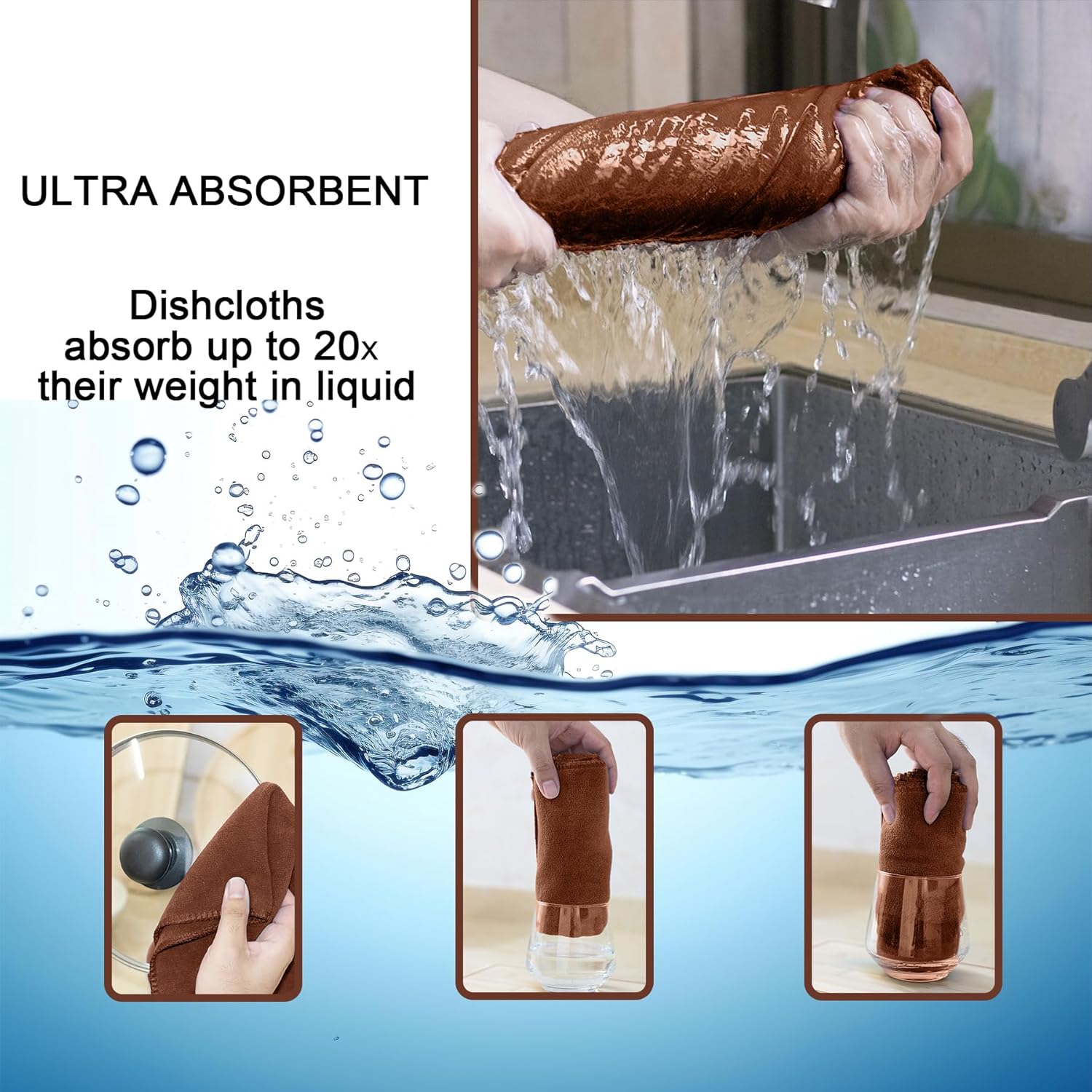 kimteny 13x28 Inches Kitchen Cloth Dish Towels, 400 GSM Premium Dishcloths, Super Absorbent Coral Velvet Microfiber Cleaning Cloths, Fast Drying Rags for Washing Dishes (12 Pack, Brown)