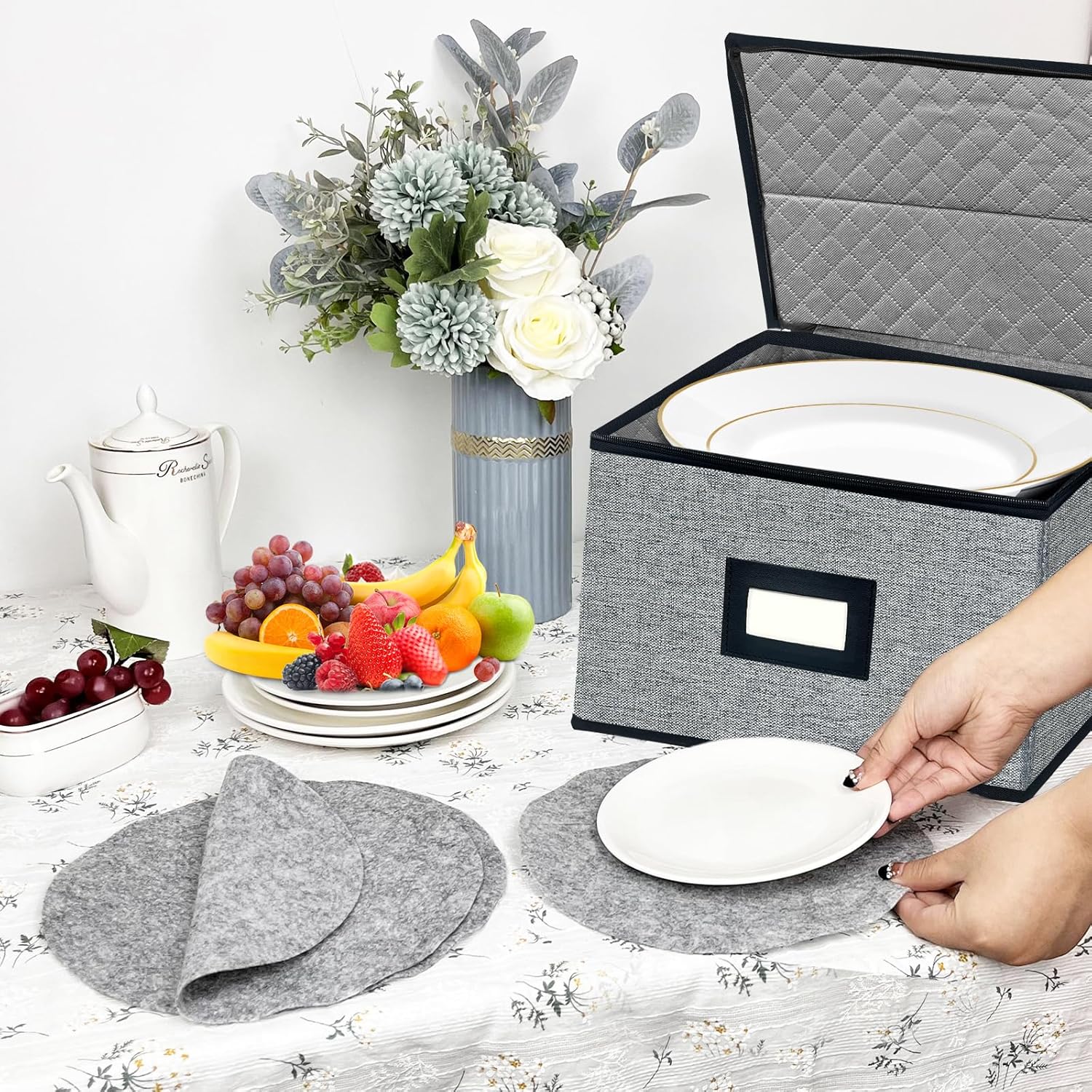 - 🍽️Enhanced Protection with Felt Pads - Each china storage container includes 24 felt dividers to effectively safeguard your dinnerware during transport and storage, minimizing the risk of damage to your plates.
