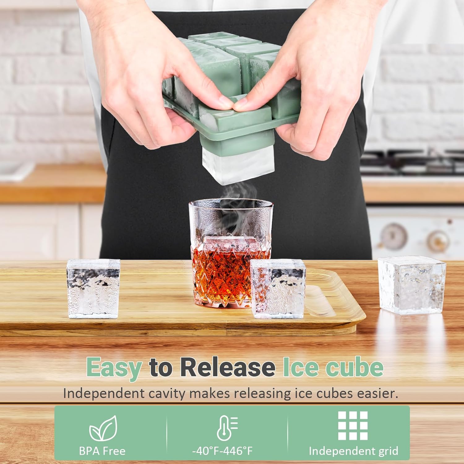 - PREMIUM & STACKABLE OLD FASHIONED ICE CUBE TRAY: Crafted from high-grade silicone, large ice cube trays for cocktails is flexible and durable, dishwasher safe, oven safe and microwave oven safe. Extra large ice cube tray can be stacked inside each other for space-saving freezer storage.