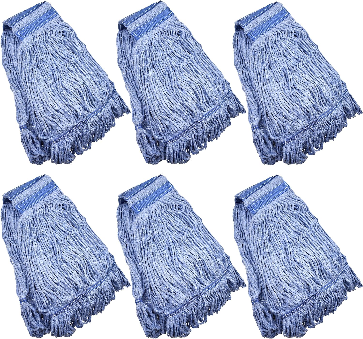 Mop Head Replacement Commercial Heavy Duty String Blue Wet Mop Heads for 3 Typs Commercial Mop Handle(6,Large,Weight 23oz)