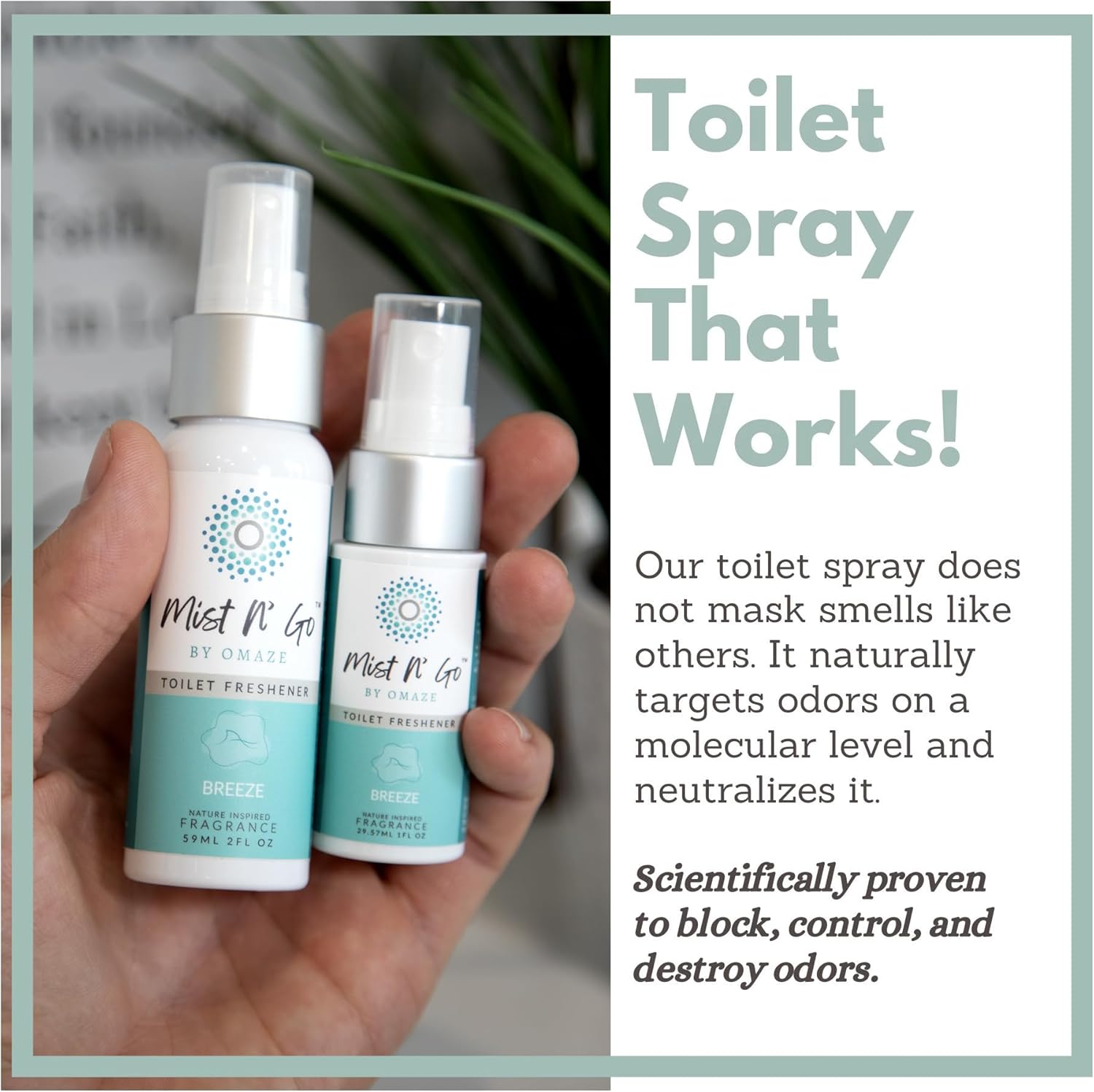 Mist N’ Go by Omaze Travel Bathroom Spray for Toilet Spray Odor Eliminator - Travel Toilet Spray for Bathroom Air Freshener Spray for Bathroom Deodorizer - Breeze Travel Size (1oz x1)