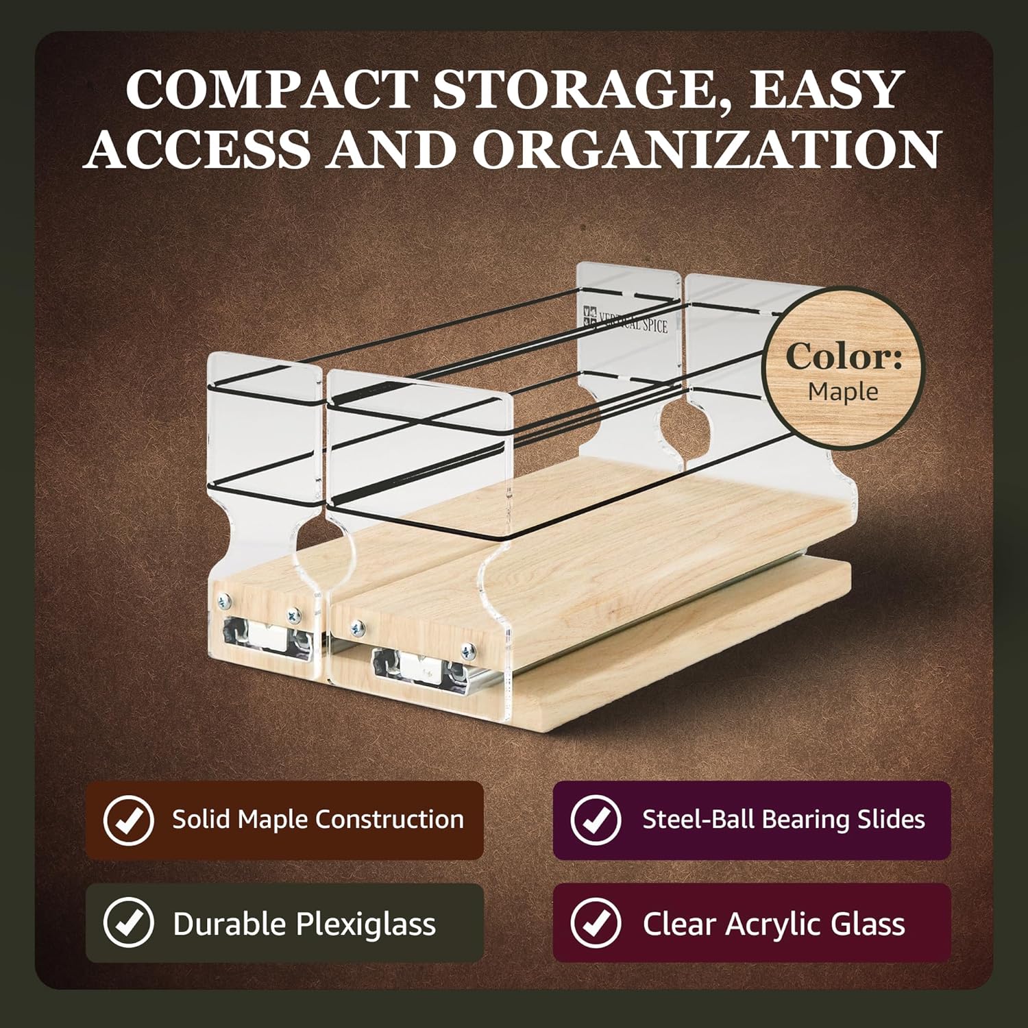 Vertical Spice Combo Spice Rack Drawer - Pull Out Pantry Organizers and Storage - Kitchen Cabinet Organizer - Seasoning Sliding Caddy - Made in USA (5.75" W x 5.00" H x 10.60" D, Partially Assembled)