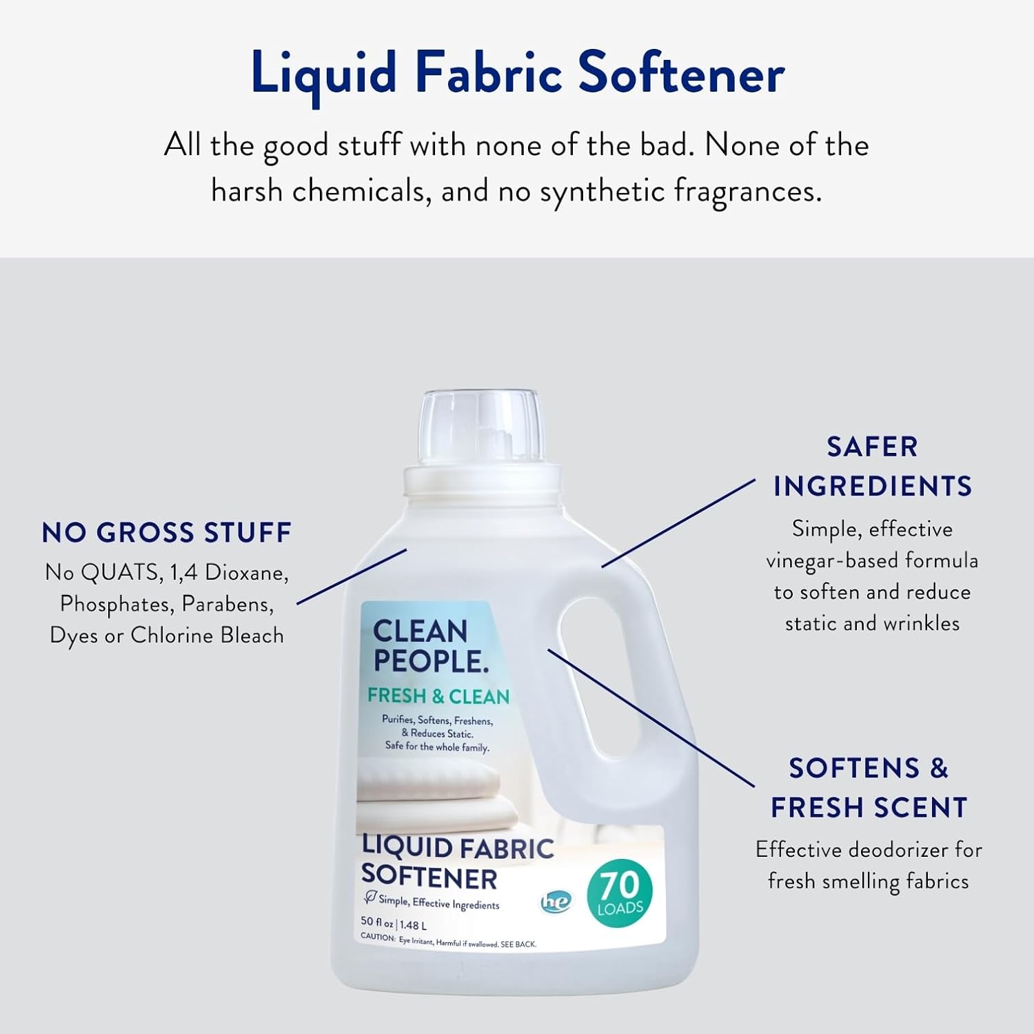 The Clean People Liquid Fabric Softener - Softens & Removes Static Cling - Vegan (50 Fl Oz, Fresh & Clean)