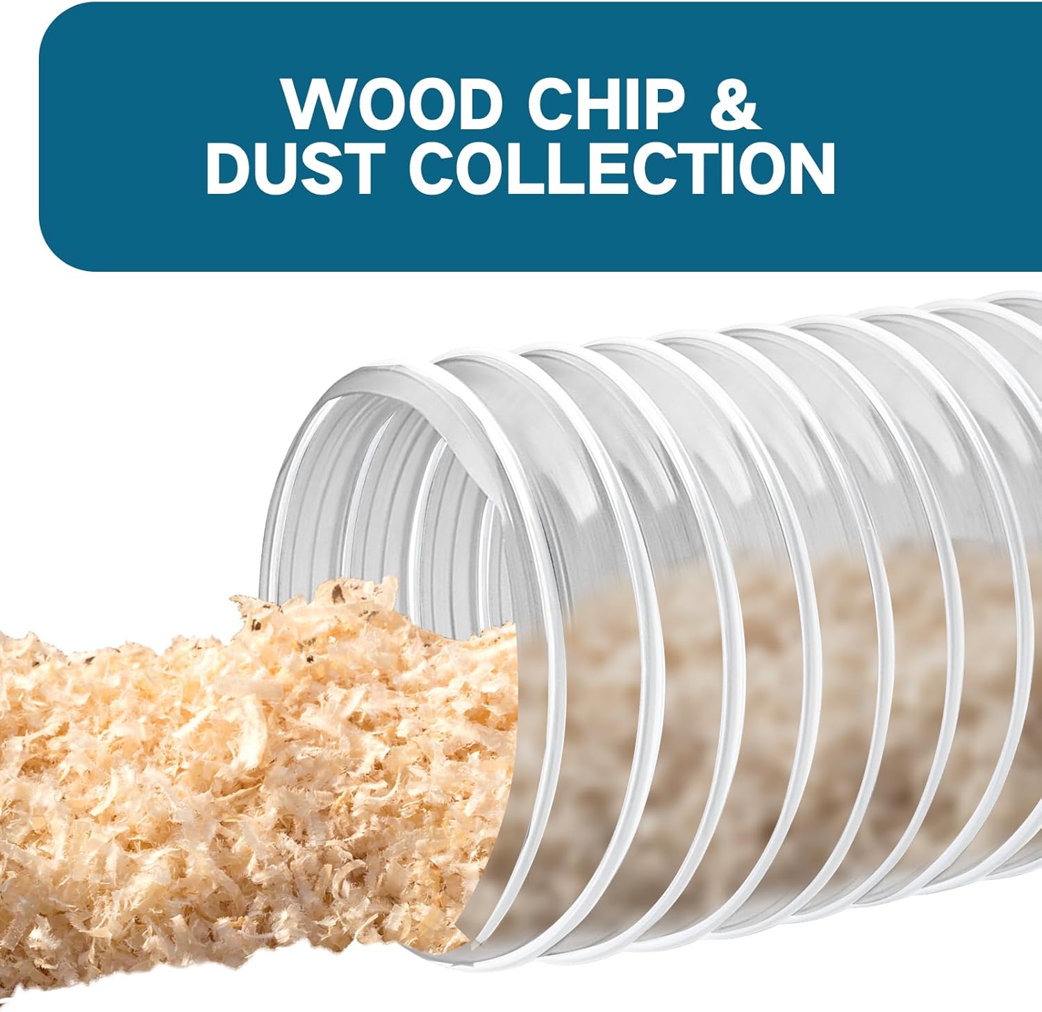 - CLEAR PVC DUST COLLECTION HOSE; The clear PVC material allows you to see not only dust and debris, but also if any buildup or clogging has occurred, dealing with unexpected situations in a timely manner.