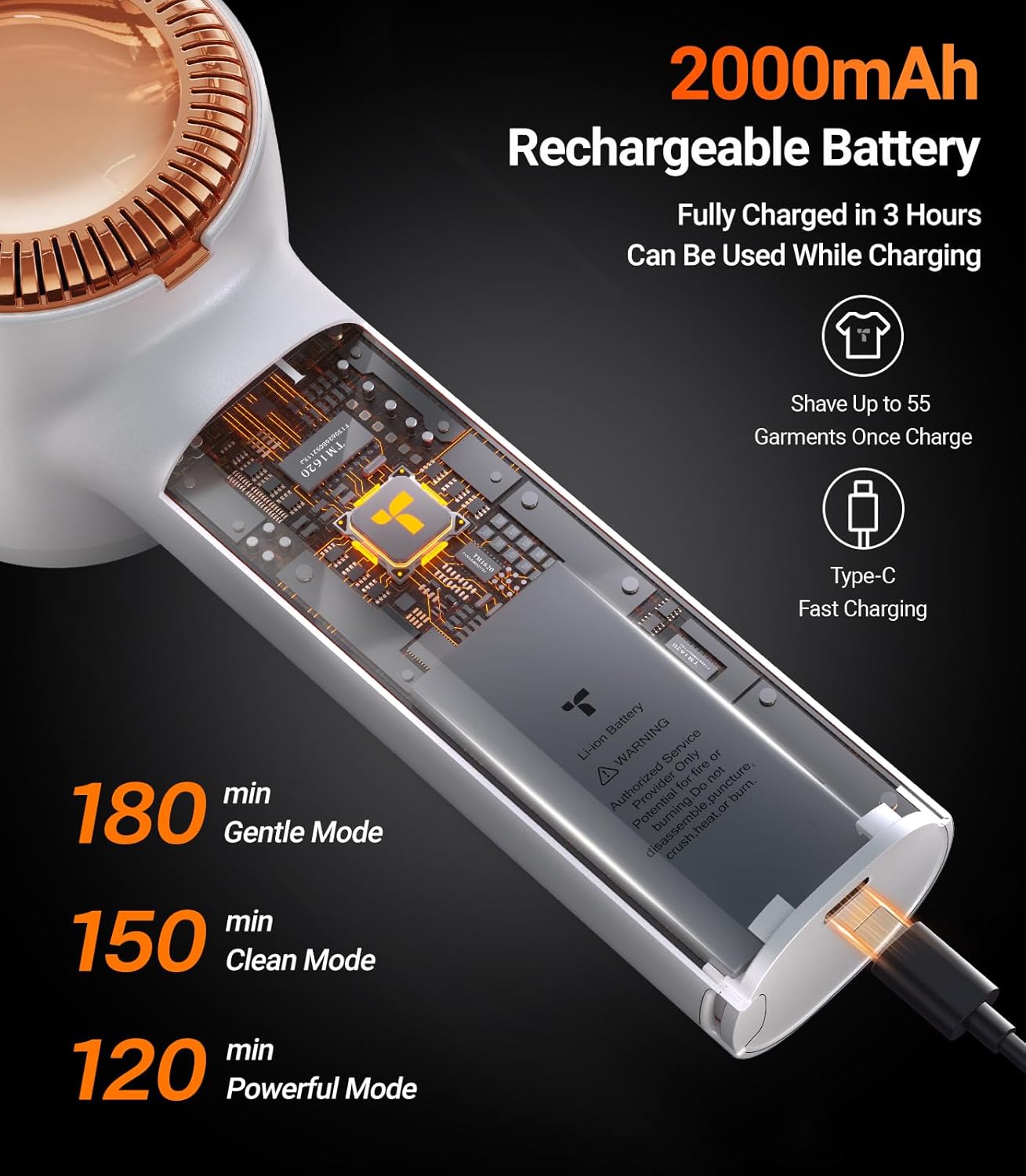 - ❤️ [Wireless Use & Use while Charging] 2H charging can support 5H of use. One full charge of this electric clothes shaver can clean 50 pieces of clothes. You can also use this pilling remover for clothes while charging. Whenever you need it, it can always be ready for use.