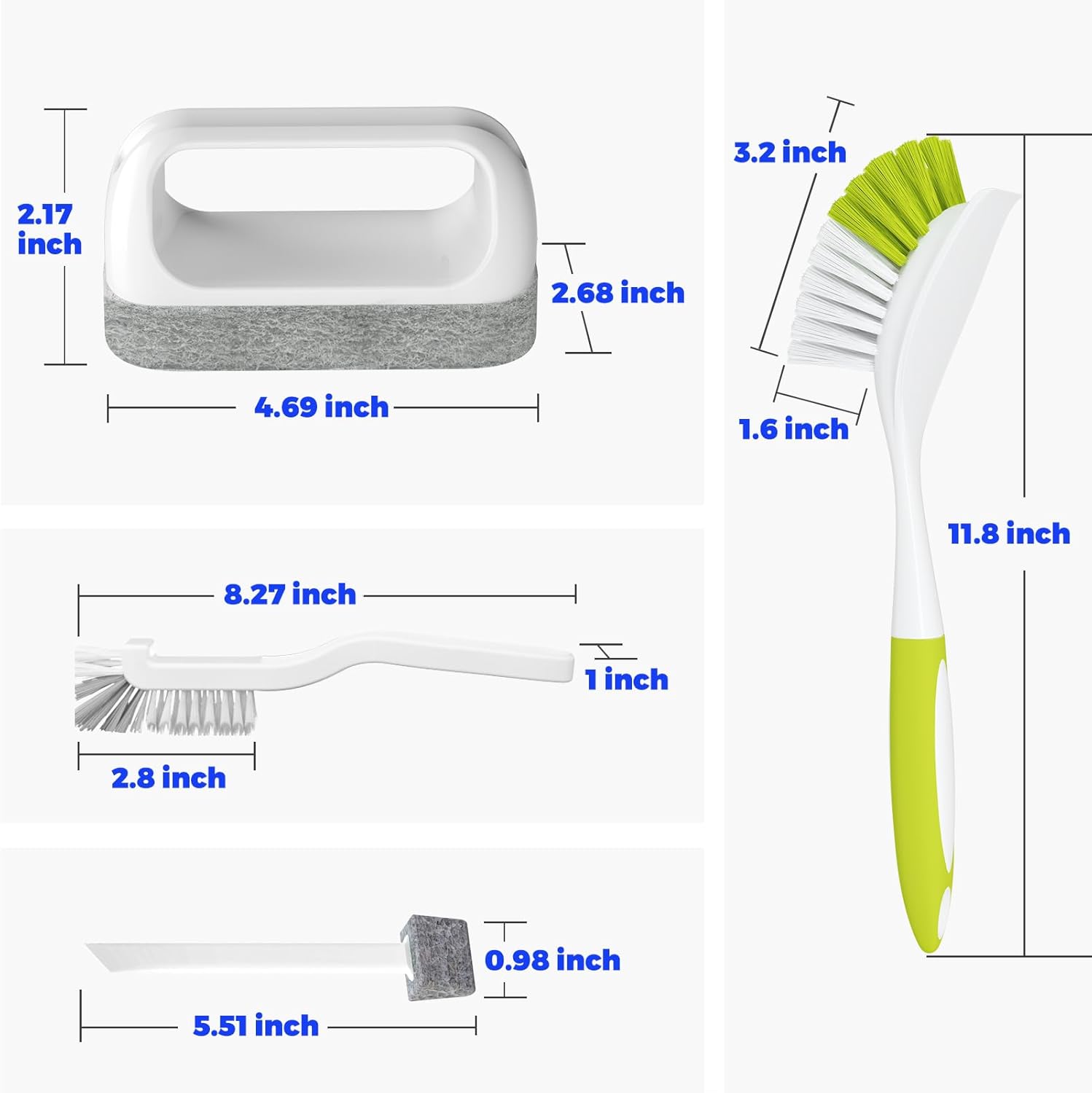 - Kitchen dish brush set includes 2 dish cleaning brushes, 1 dish scouring pad, 1 wire brush, 2 groove gap brushes.