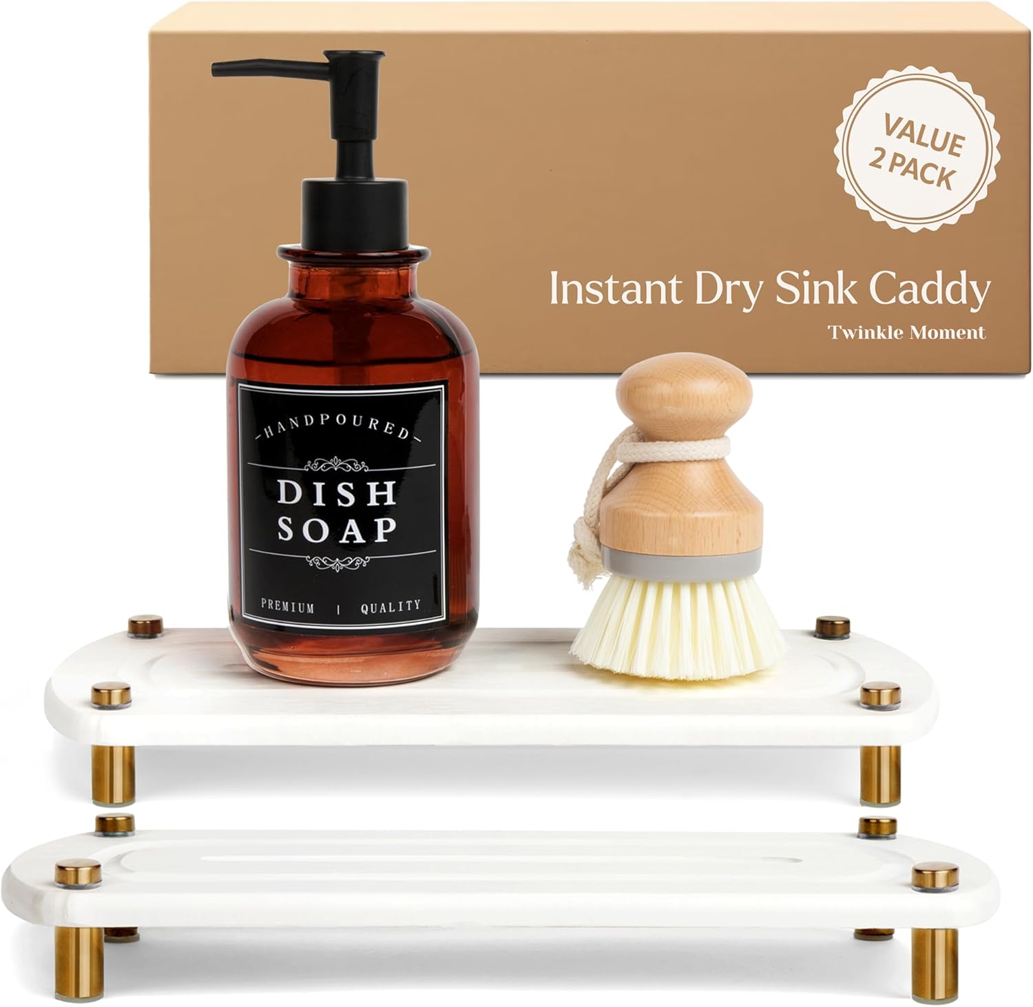 - Practical 2-Piece Value Set β Includes two white quick-dry trays with eight golden stainless legs, giving you a versatile 2-pack set to organize soap, sponges, or bathroom essentials in multiple spots such as the kitchen and bathroom