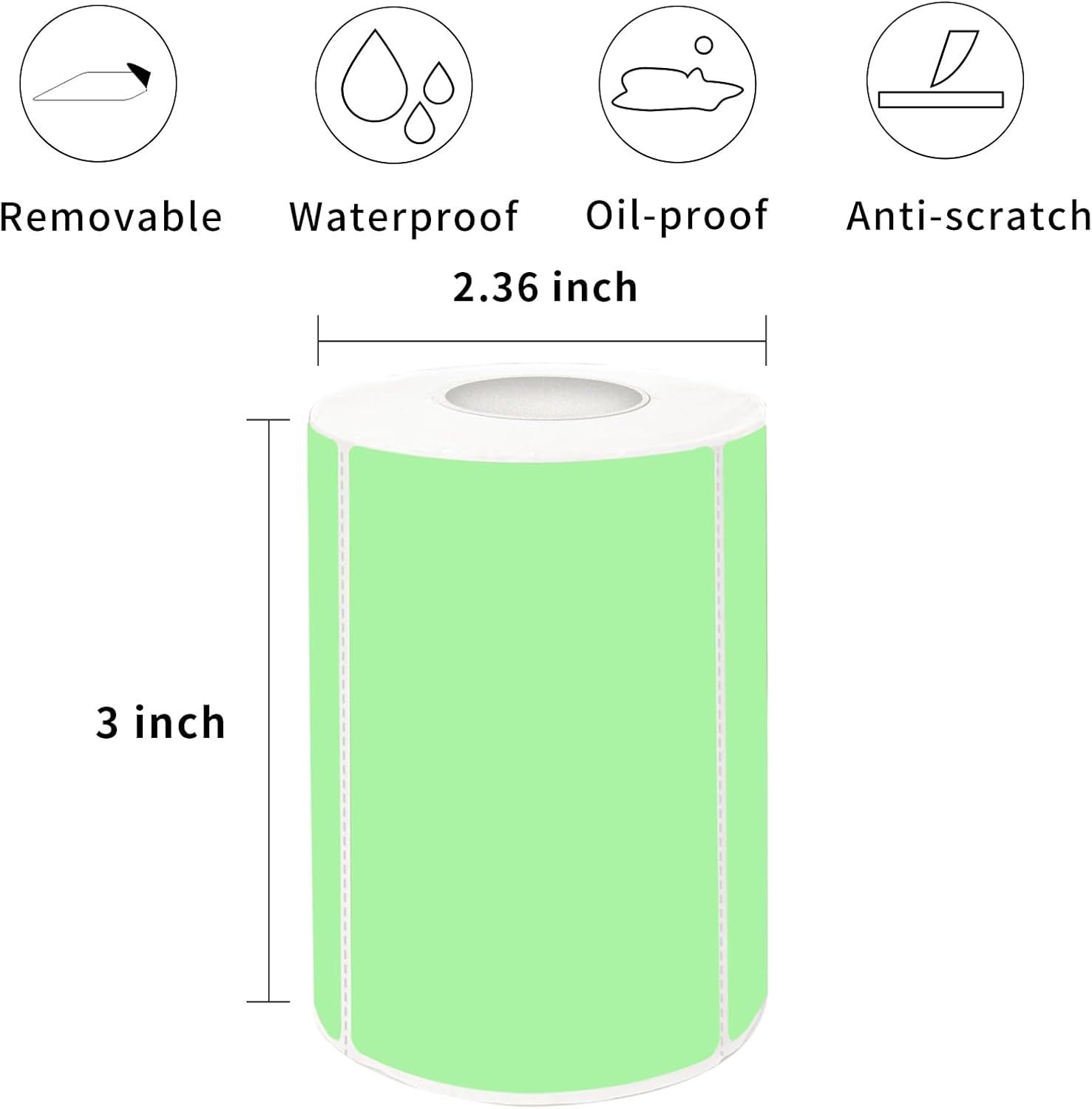 2×3 Inch Green Removable Thermal Labels,Self-Adhesive Square Direct Thermal Labels,300 Sheets per Roll with Perforated Lines
