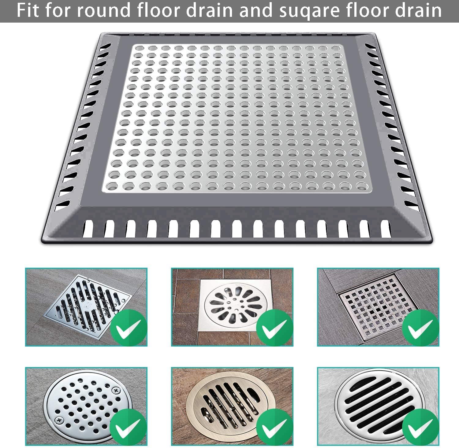 - The shower drain hair catcher is measured 6.85 L x 6.85 W (inches), fit for drain below 6 inch,square shape covers both round and square style shower drains,perfect for shower drain. Attention: pls measure your drain before purchase.