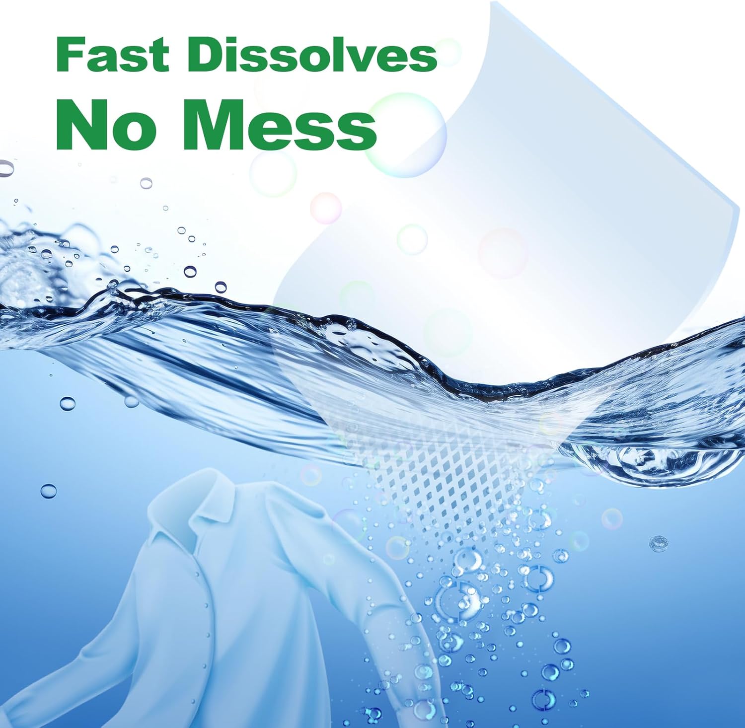 - Ultra-Concentrated Cleaning: Experience the cleaning power of ultra-concentration with each sheet. Each laundry detergent sheet is formulated with deep cleaning ingredients to easily remove tough stains including juice, oil, Sauce and dirt. These detergent sheets dissolve quickly, leaving your laundry fresh and spotless without any harm to the fabrics