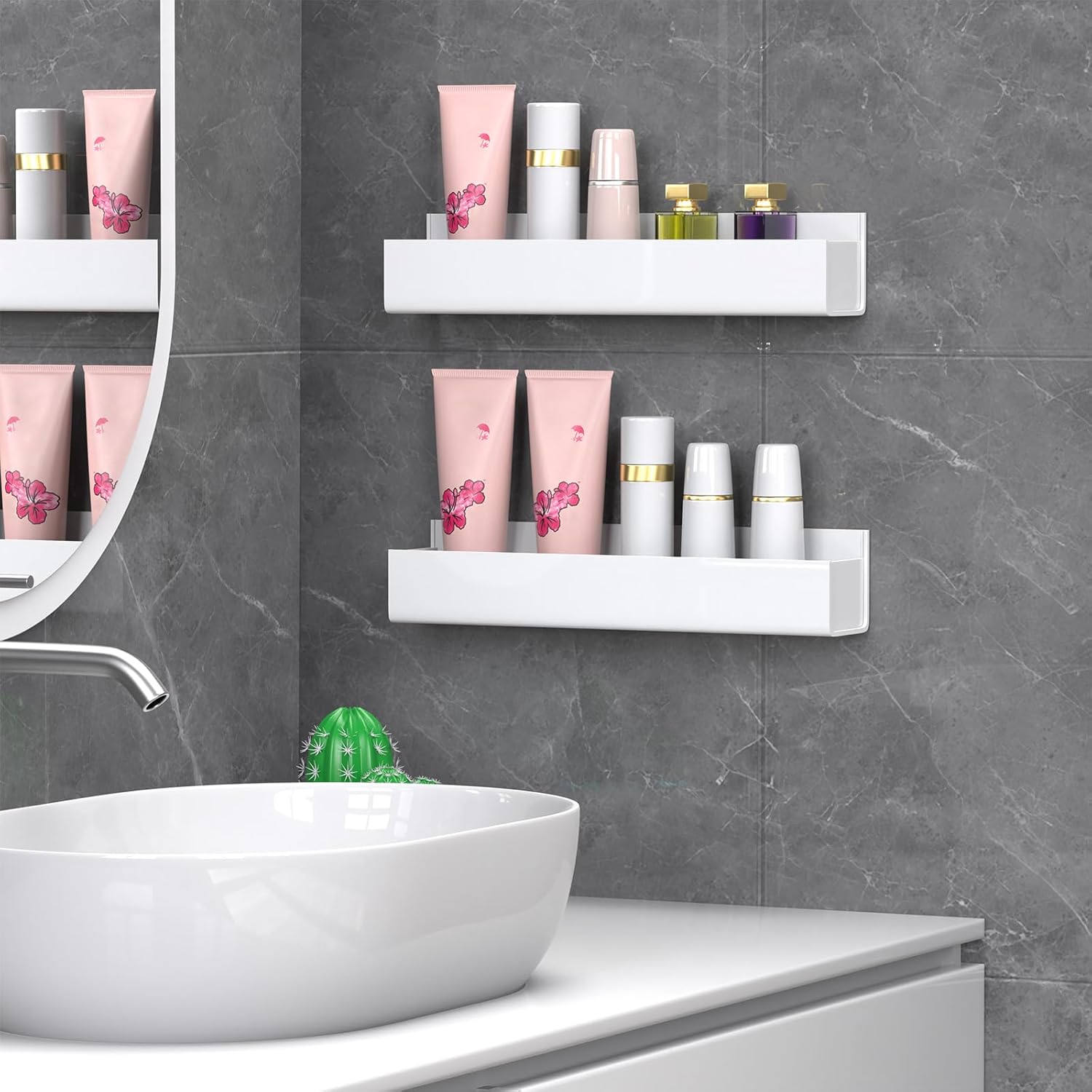PMMASTO Adhesive Acrylic Spice Rack Organizer for Wall with Nano Double Sided Tape, Spice Shelf Organization for Kitchen Cabinet Door/Pantry Door, Wall Mount Seasoning Rack (White-2 Pack)