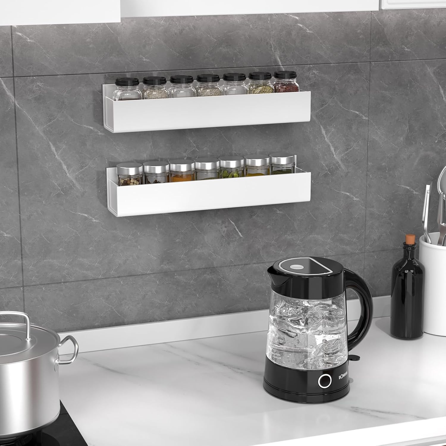 - Strong and durable: The wall acrylic clear spice storage is made of thickened acrylic, sturdy and durable, not easy to break or deform, corrosion-resistant, moisture-proof