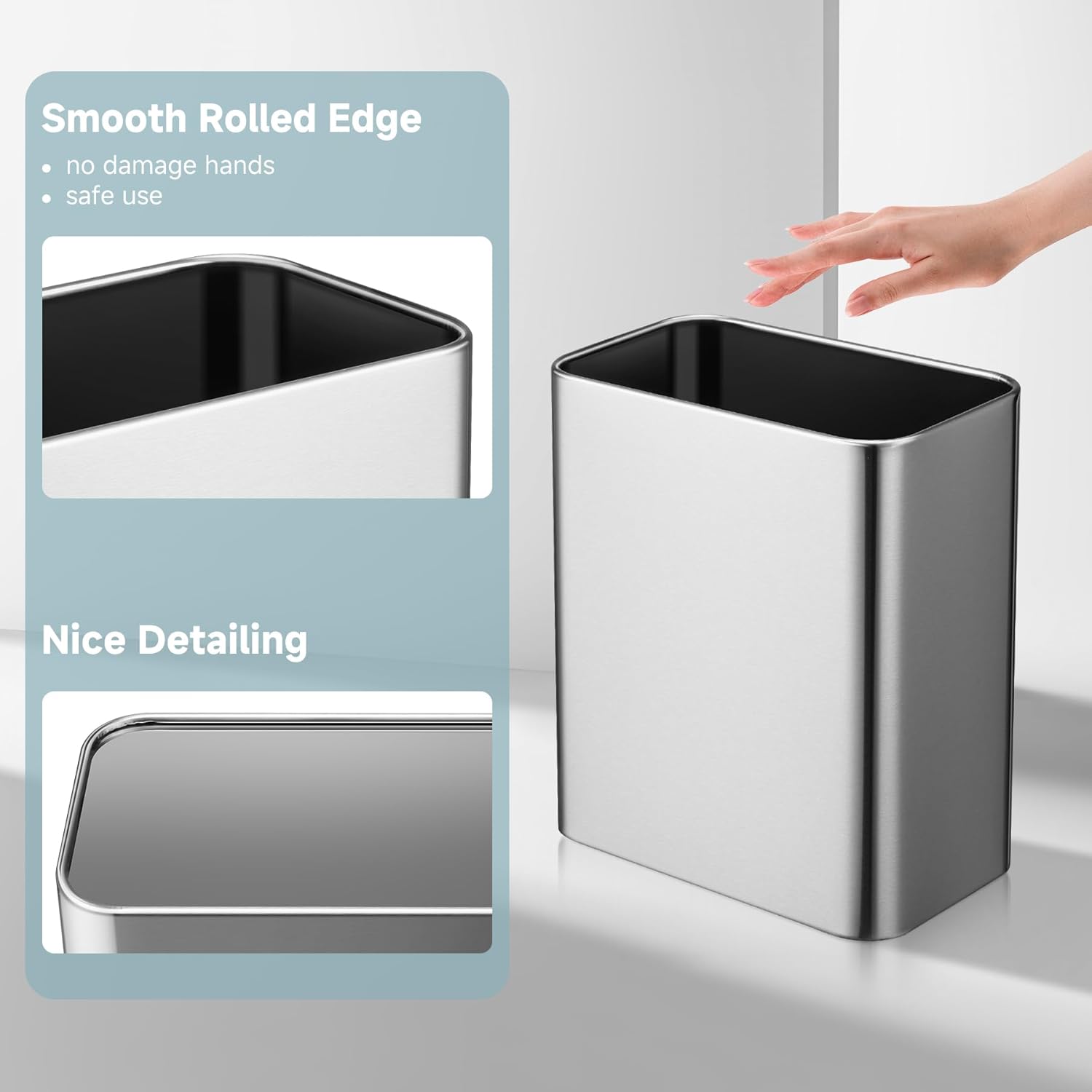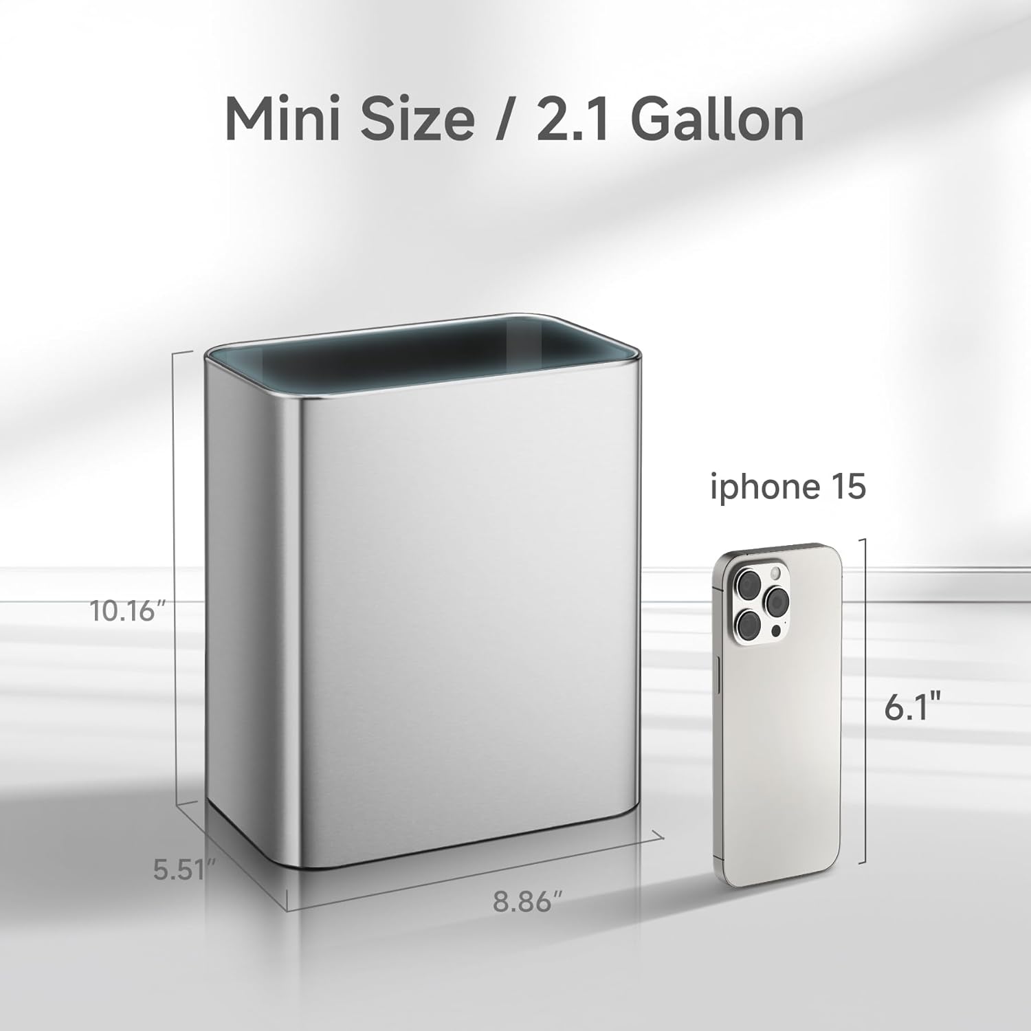 TIPGO Small Metal Trash Can, 2.1 Gallon Slim Trash Can for Bathroom, Wastebasket Garbage Bin for Bedroom, Office, Kitchen, Under Sink (Silver)