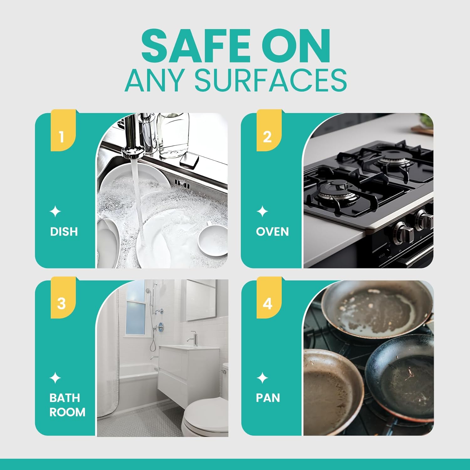 • NON-SCRATCH: Heavy duty non-scratch scrubbing surface, made of high-density absorbent sponge and reusable cellulose materials, non-toxic and long-lasting, super scrubbing fibers are plant-based, with nice cleaning ability, cleans tough jobs fast