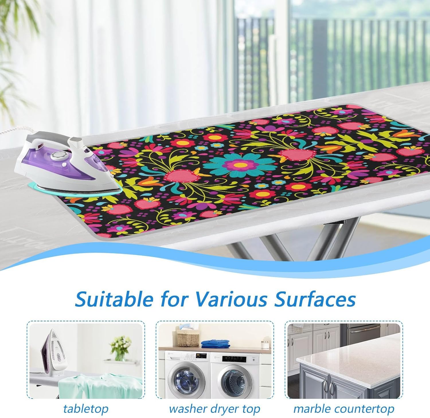 Ironing Mat Thickened Ironing Blanket Travel Portable Double-Side Using Ironing Pad Travel Isolate Heat Pad Cover for Washer Dryer Table Top Countertop (27.6x47.2in) Boho