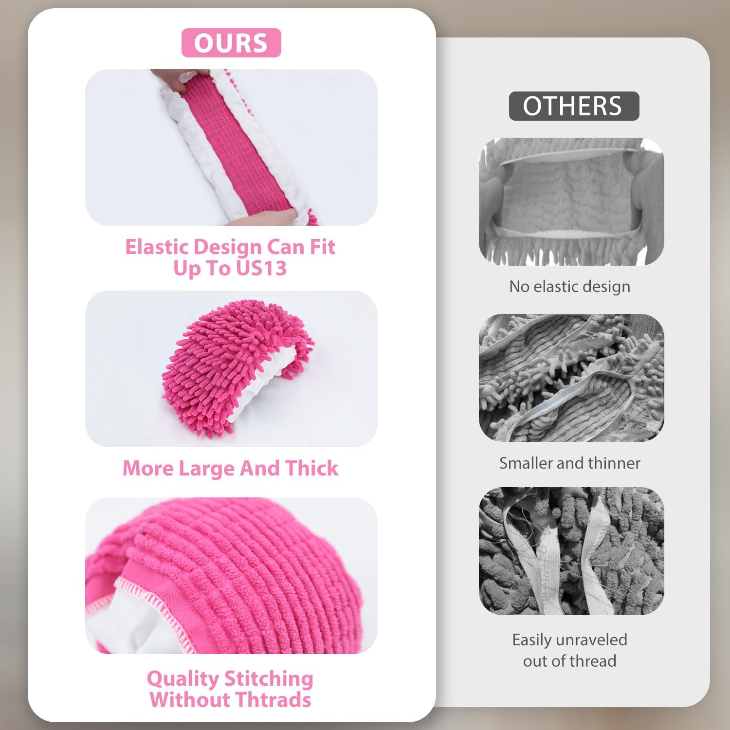 - 【Multifunctional & multi size】mopping floors, cleaning glass or pet hair, even as a shoe cover or replacement for mop head.Fantastic elasticity slippers shoes cover, two sizes offer fit a size 6-13 house shoe easily.