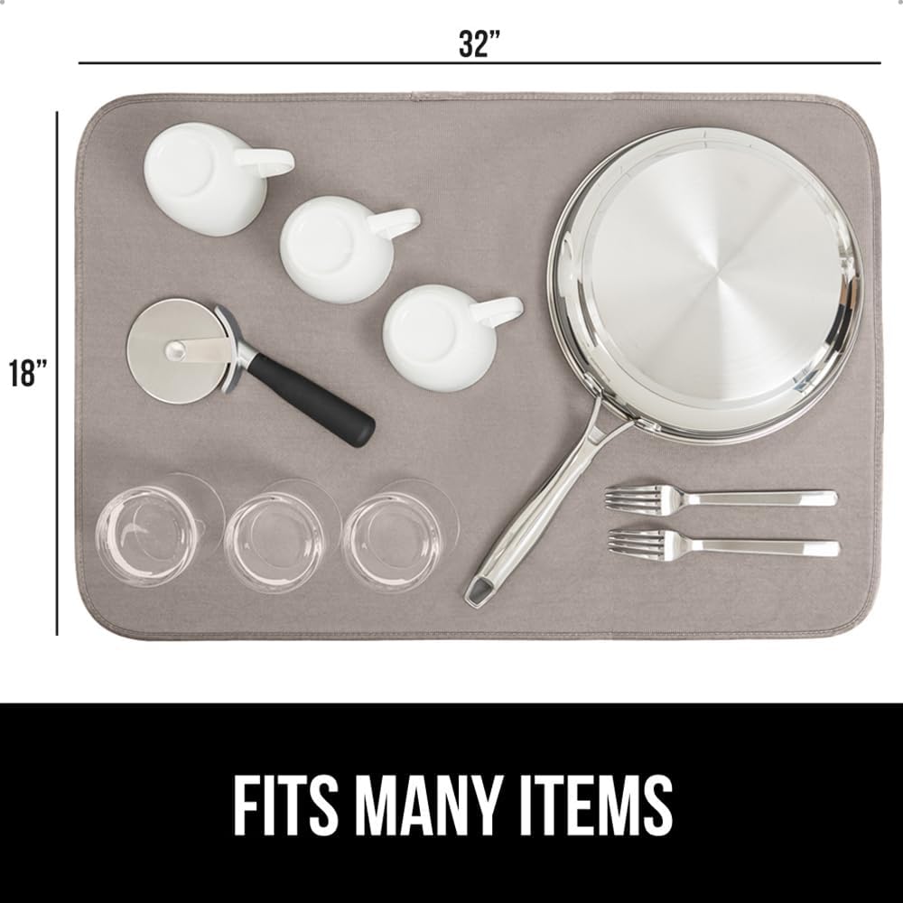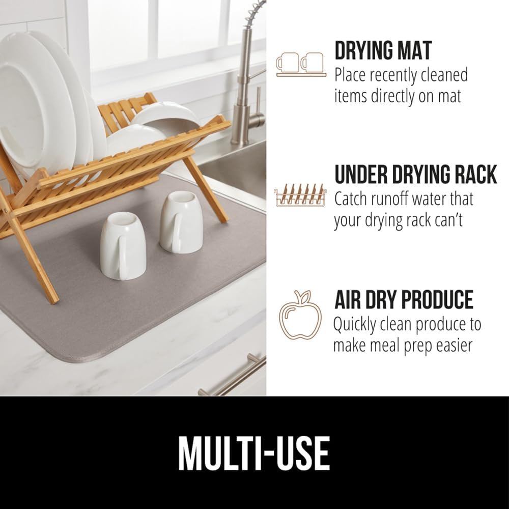 GORILLA GRIP Ultra Water Absorbent Microfiber Dish Drying Mat, 18x32, Quick Dry Thick Mesh, Slip Resistant Pad for Sink Dishes or Under Rack, Kitchen Counter Accessories, Machine Wash Mats, Almond