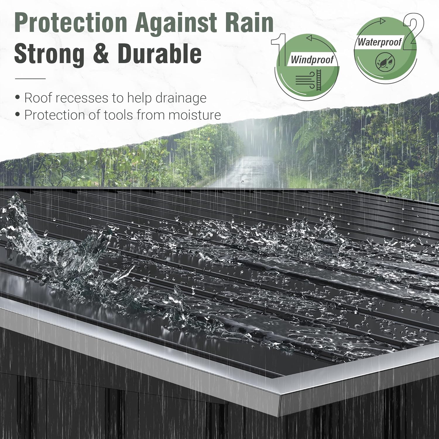 • STEEL FRAME CONSTRUCTION: This outdoor storage shed is made of galvanized steel. The whole is steel frame structure with added metal reinforcements inside and the exterior surface is covered