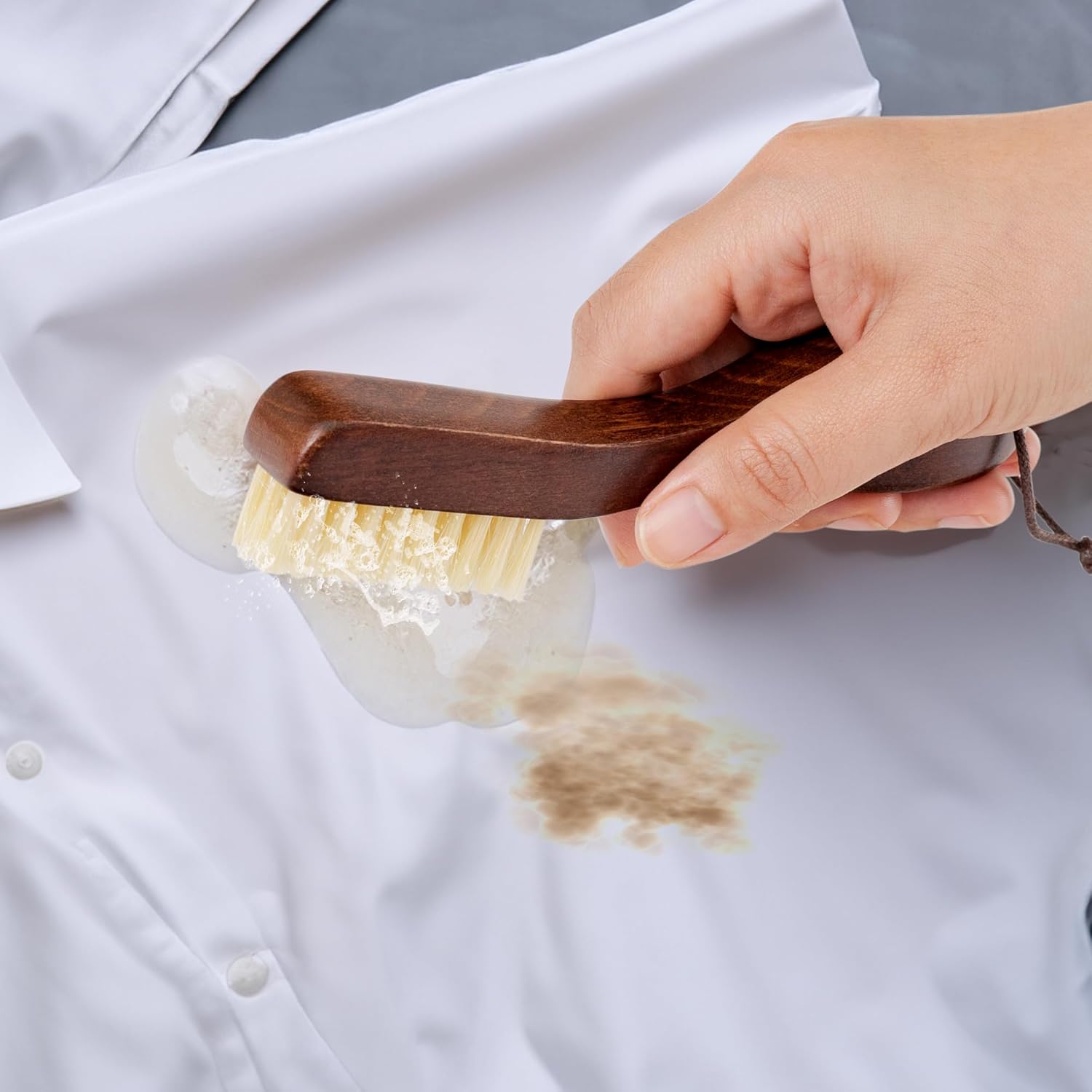 - Stain Removal: When combined with a small amount of soap and brushed gently for a few minutes, this laundry stain brush will reveal the original shine of your fabric. Giving the best ability to clean tough stains such as grease, oil, sweat, bodily fluids, and lipstick.
