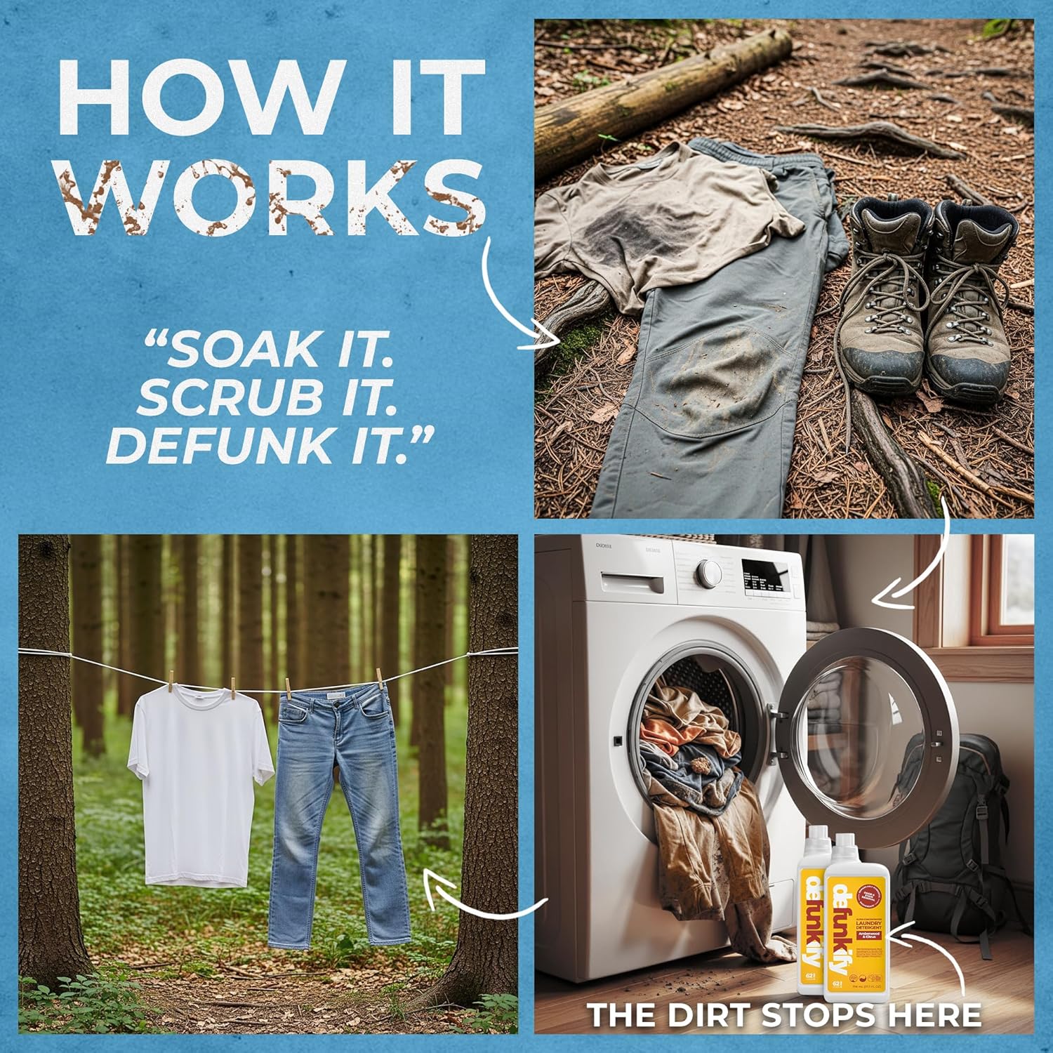 - 'šŖš®ššµ ššµš² ššš»šø š¢šš!' ššš®šæš®š»šš²š²: Defunkify's laundy detergent enzymes clean deep within fabric fibers to eliminate the residue, oils, sweat & heavy cover-up scents left behind by other washing detergents. As a lightly scented 'Amberwood & Citrus' laundry detergent w/ all natural old odor eliminator & set-in stain remover ingredients, šš¼ššæ š°š¹š¼ššµš¶š»š“ šš¶š¹š¹ šÆš² š¹š¼š¼šøš¶š»š“ & š³š²š²š¹š¶š»š“ š¹š¶šøš² š»š²š š¶š» š® šš¶š»š“š¹š² šš®ššµ, š“šš®šæš®š»šš²š²š±.