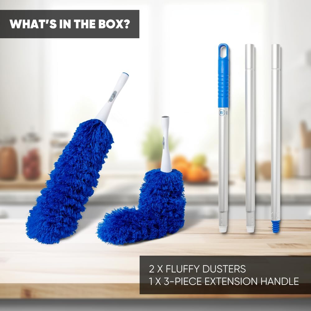 - ✔️ [KIT INCLUDES] — 2 x Fluffy Dusters and 1 x 3-Piece Aluminum Handle