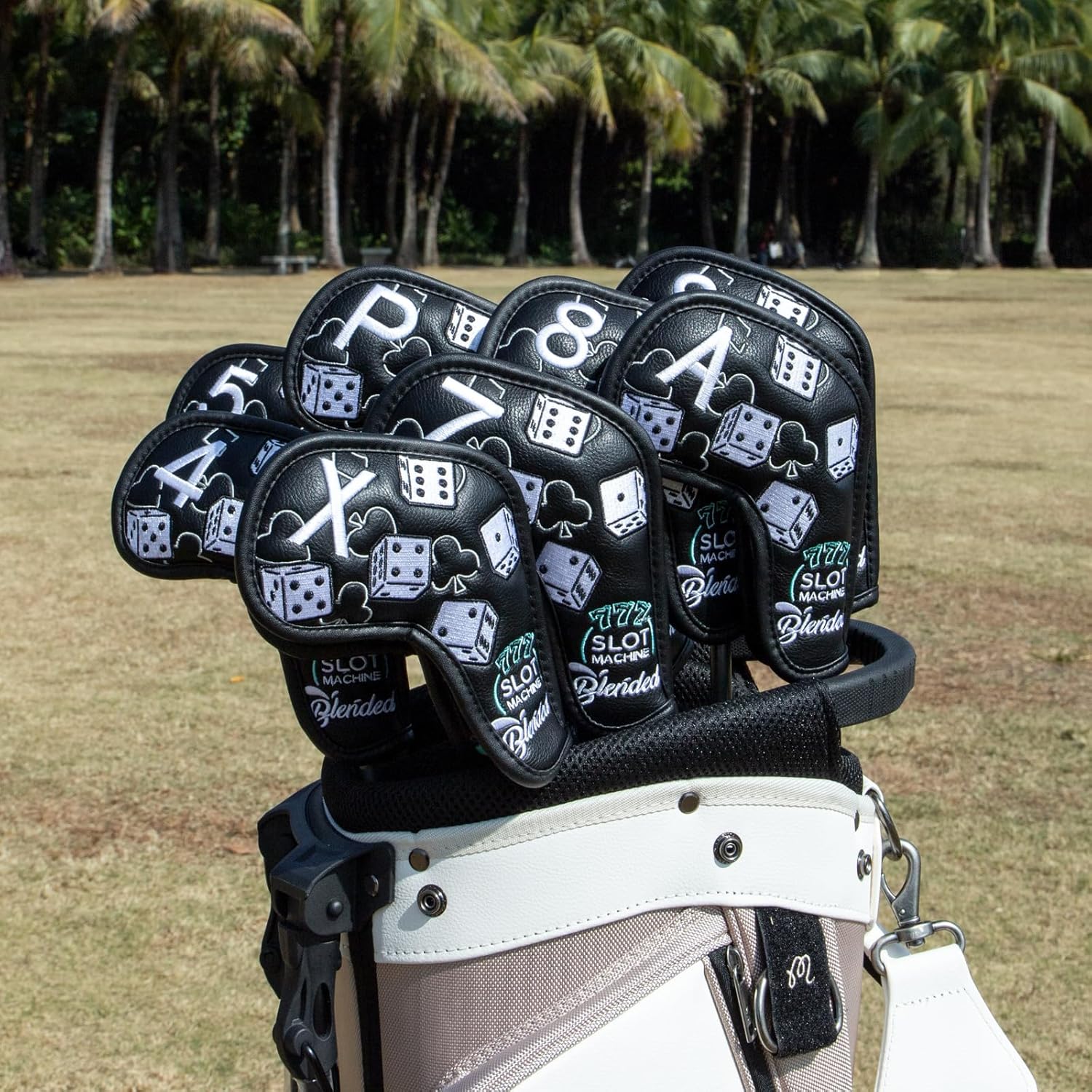 Golf Iron Covers Lucky 777 Golf Iron Headcover 10pcs Synthetic Leather Golf Clubs Iron Covers for Golf Clubs Head Covers for Irons with Magic Tape Fit All Brands