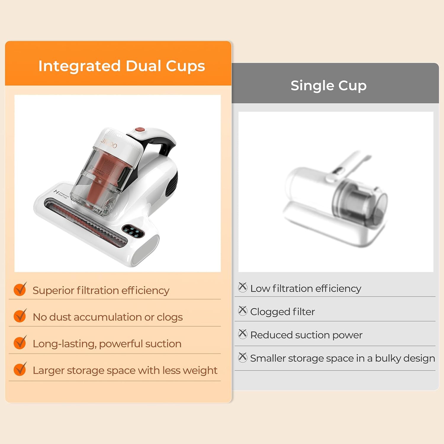 • 【High Efficiency HEPA Filtration】Our mattress vacuum cleaner with premium HEPA filter that deeply purifies and releases fresh air,captures 99.9% of particles as small as 0.3 microns, separate dust and hair without any leaks, ensuring clean air output and block the twice pollution effectively. Original integrated upper and lower dual-cup structure, patented dual cyclone filtration tech, for deep cleaning mattresses and sofas, bedding, carpets more efficient , achieves optimal results.