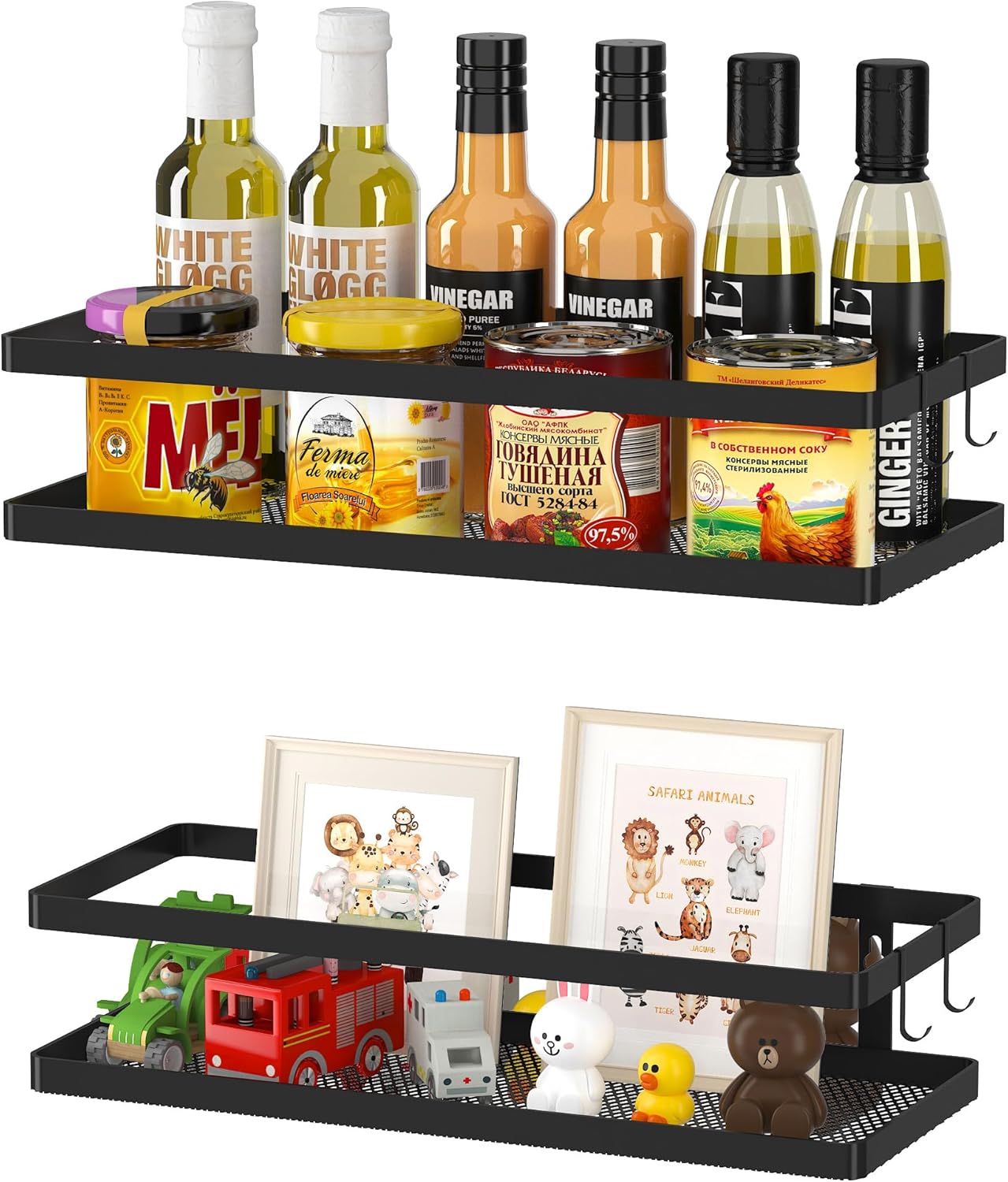 PUSDON Hanging Storage Baskets Organizer Wall Mount, Metal Wire Storage Bin Rack for Kitchen Bathroom Shower Spice Shelf Home Decor Essentials Black-2 Packs(Guardrail)