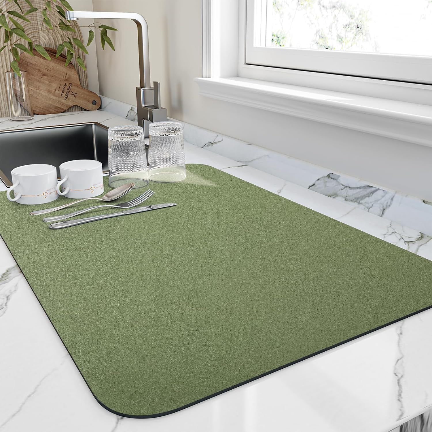 Dish Drying Mat for Kitchen Counter, Heat Resistant Drainer Mats with Non-slip Rubber Backed, Hide Stain Kitchen Super Absorbent Draining Mat, Easy to Clean Dish Rack Pad, Green 18"x28"