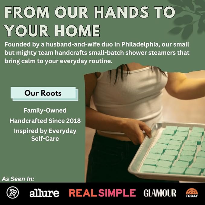 - HANDMADE WITH CARE IN USA: Every shower steamer is handcrafted by us and produced 100% in-house. As a small business, we personally oversee every step to ensure unmatched quality in every batch.