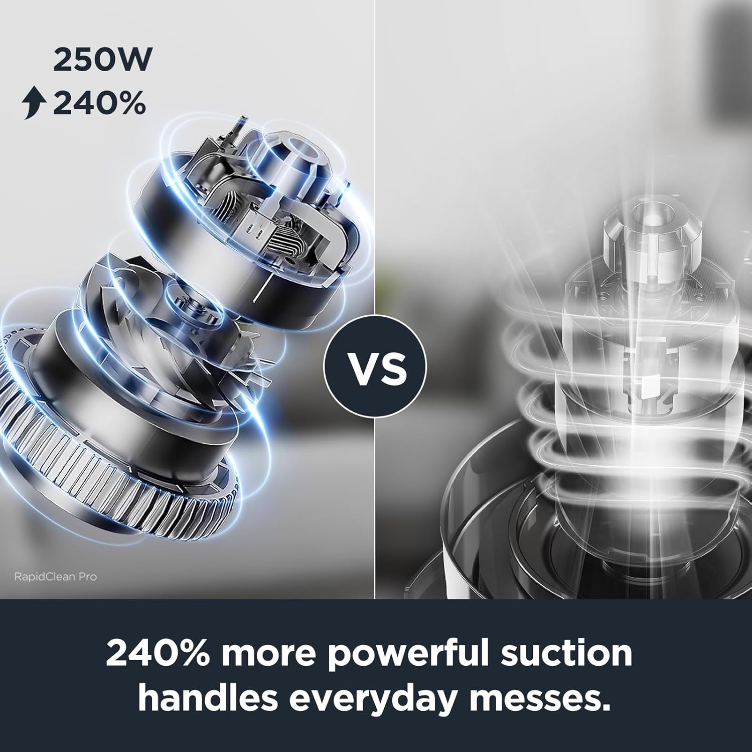 - Powerful Suction with Advanced Motor: Equipped with a 250W brushless digital motor, delivering 240% more suction power compared to previous models, ensuring deep cleaning on various surfaces.
