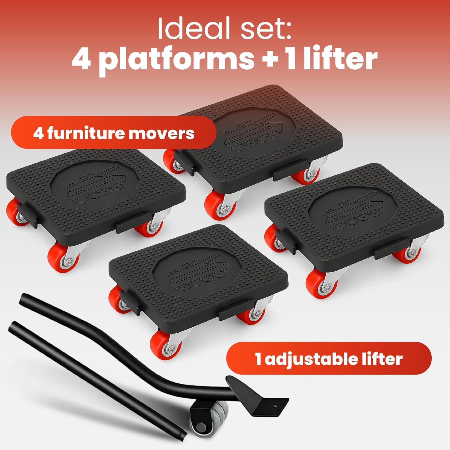 Heavy Duty Furniture Dolly Set with Lifter Tool and 5 Wheels - Capacity, 360Β° Rotating Wheels for Sofas, Refrigerators, and More (1200 LB)