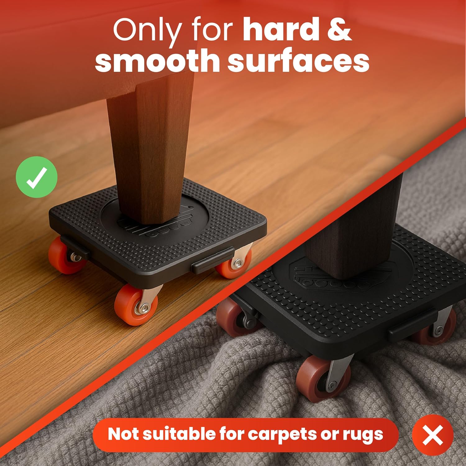 - π DURABLE CONSTRUCTION: Made from high-strength steel, this set of furniture movers is built to withstand repeated use, ideal for both residential and professional purposes.