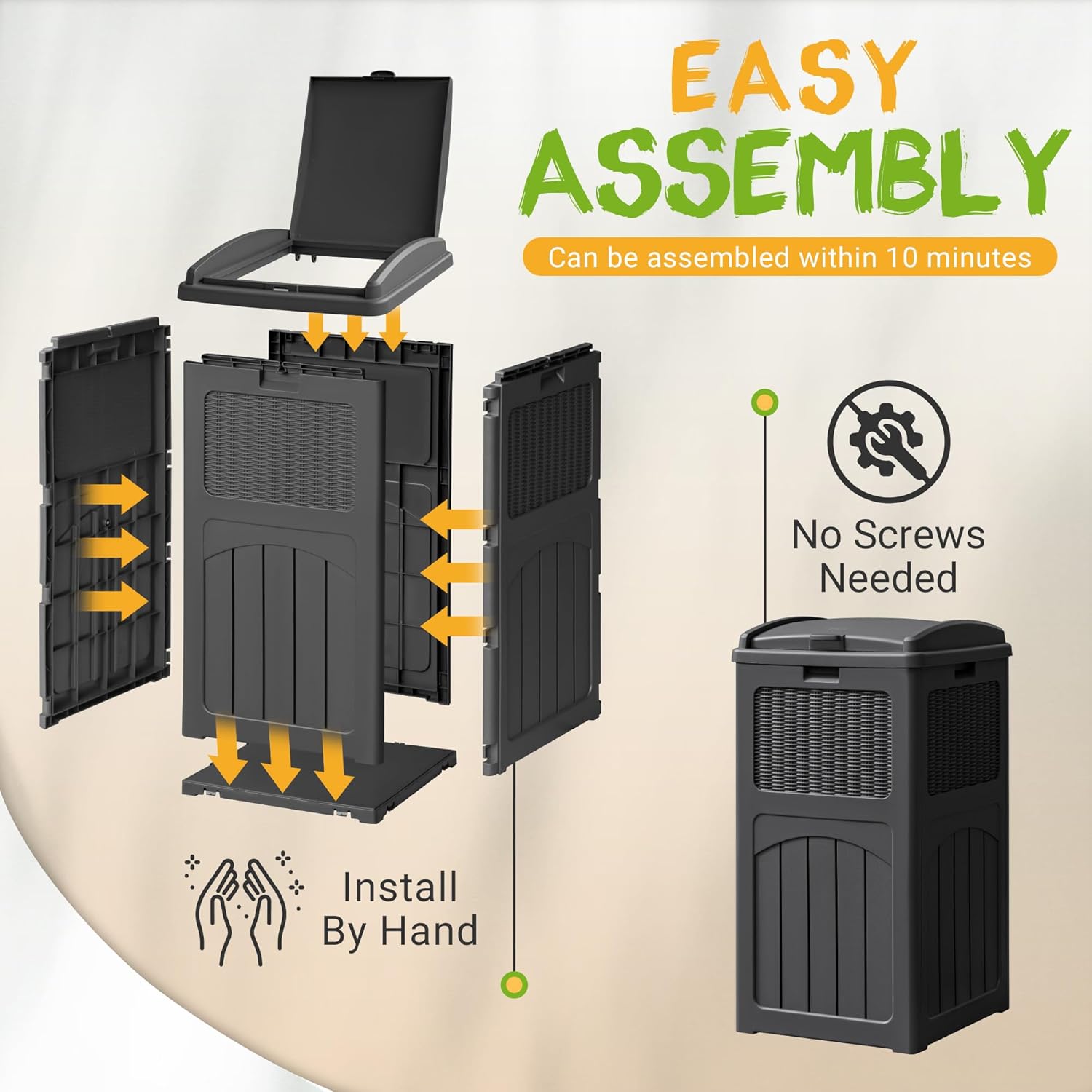 - Easy Assembly: The trash can comes in 6 parts. No screws needed, you can assemble it within 10 minutes by hand.
