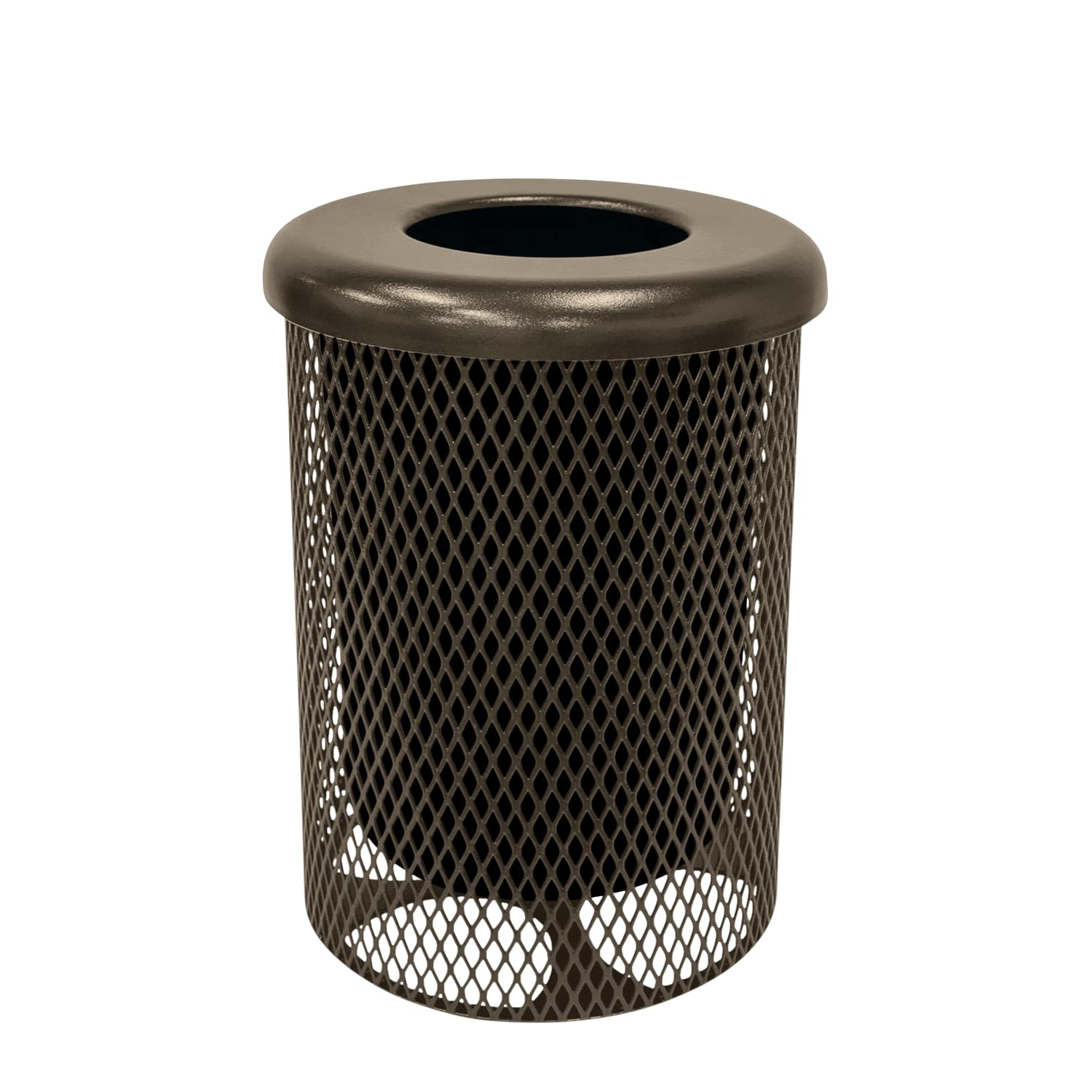 COATEDOUTDOORFURNITURE RFT-TXTBRW Heavy Duty Round Trash Receptacle with Flat Top, Liner Included, 32 Gallon, Textured Brown, Made in America
