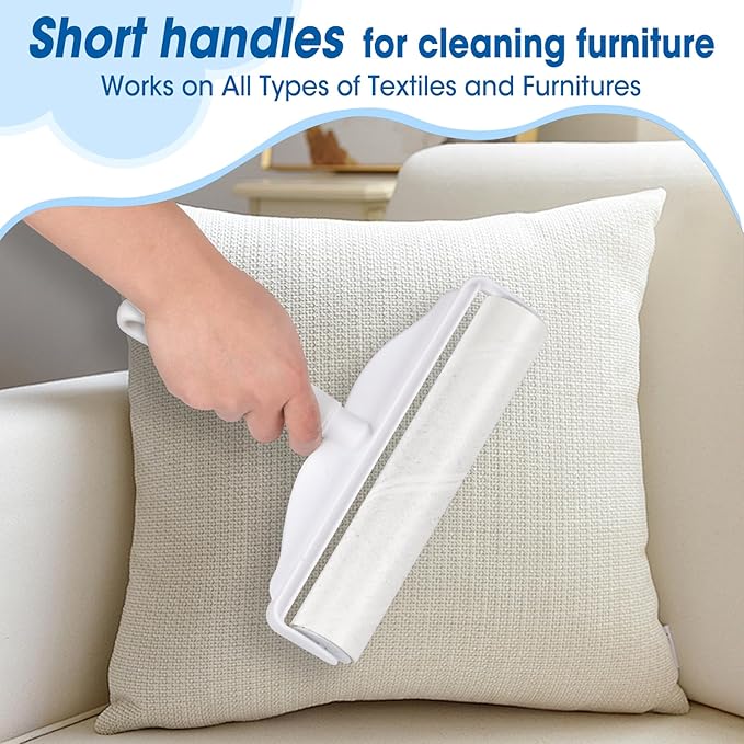 - Adjustable & Flexible: The total length of the sticky roller is 45.2 inches, and it can be provided with four adjustable lengths–45.2 inch, 33 inch, 19.3 inch and 9.5 inch, so it can be easily cleaned without bending over. Different sizes can meet different needs. The short handle can be used for clothes and couch, and the long handle can be used for carpets, floors and curtains. Make sure the whole room is clean, comfortable and relaxed
