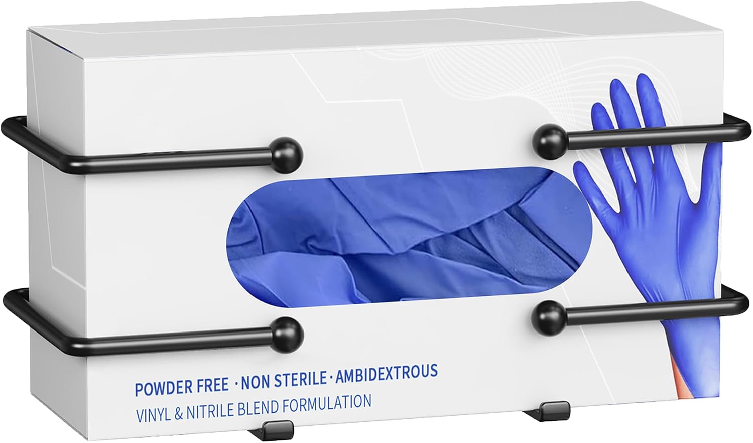 Glove Box Dispenser Wall Mount: Black Glove Holder Organizer for Disposable Glove Box & Tissue Box - Glove Organizer on Wall in Lab, Kitchen, Bathroom, Garage