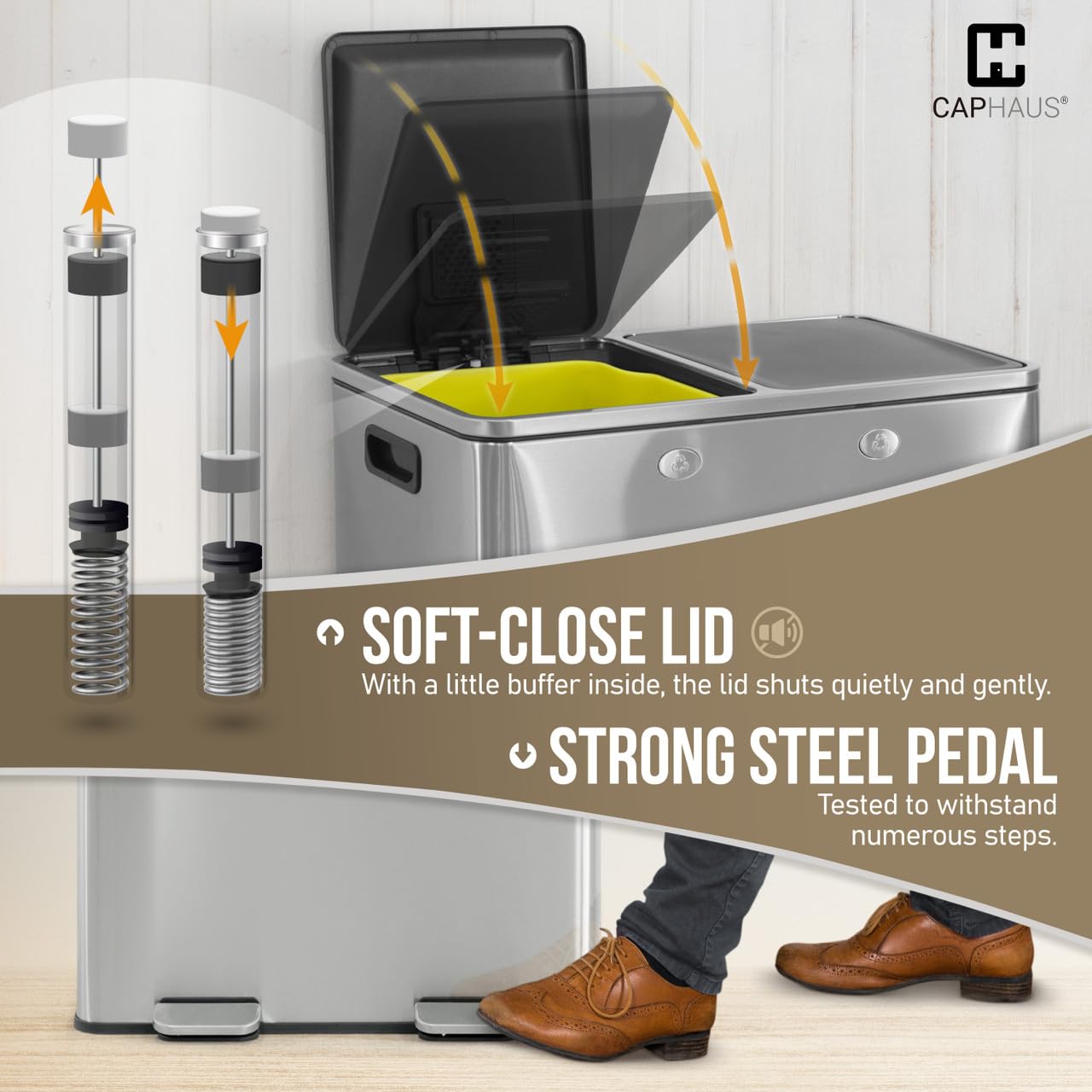 - šļø Durable Construction - This premium dual trash can is engineered with double lids featuring a soft-close design, ensuring a quiet and controlled closure every time. Additionally, the double pedals are built to withstand numerous steps, providing durability and reliability for long-term use. With this robust construction, you can confidently manage your waste without worrying about wear and tear, making it a practical and efficient solution for any home or workspace.