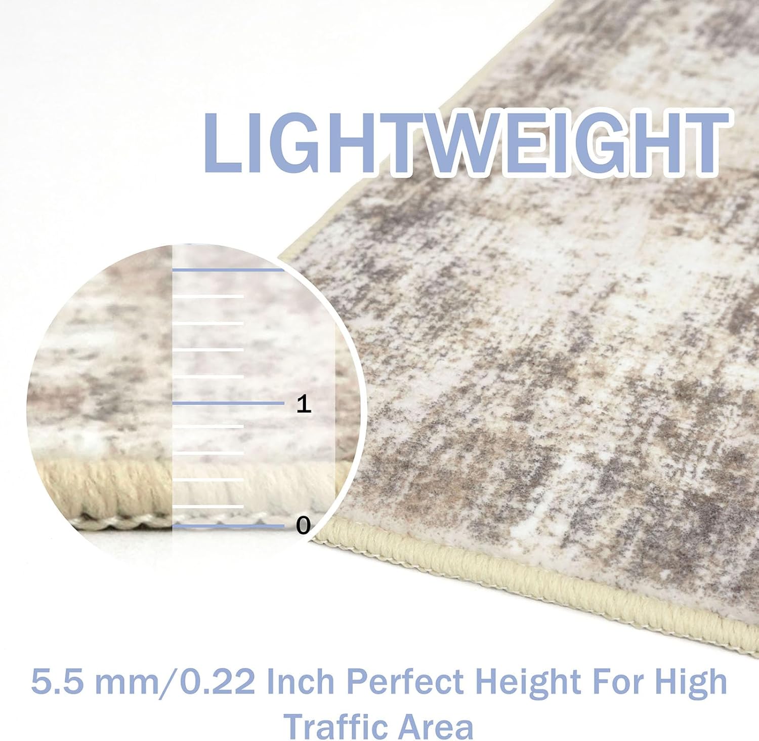 IOHOUZE Abstract Area Rugs 6x9 Ft Washable Rugs for Living Room, Non Slip Dining Room Rug Printed Faux Wool Rugs for Bedroom, Floor Carpet for Office Nursery Playroom, Beige Brown