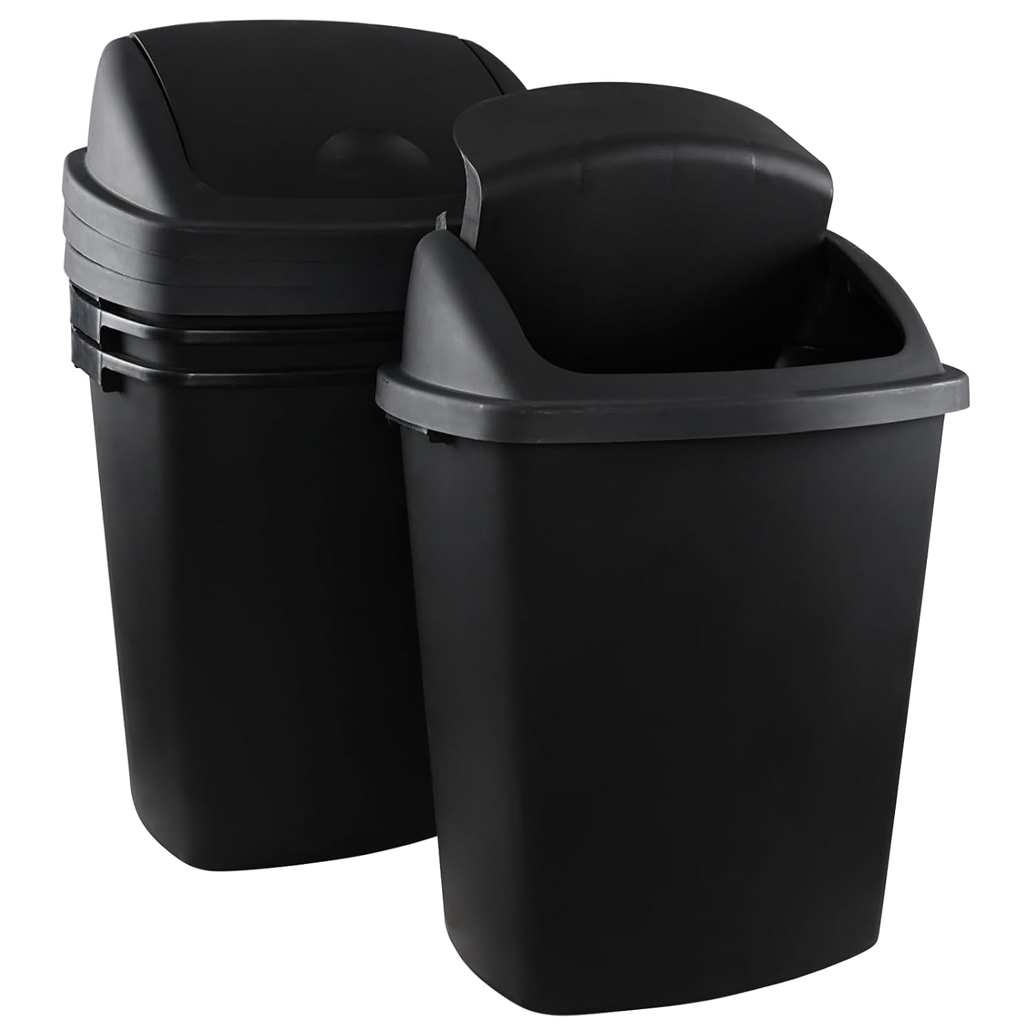 19 Gallon Kitchen Waste Bin, Large Plastic Trash Can, Black, Holds 70 Liters