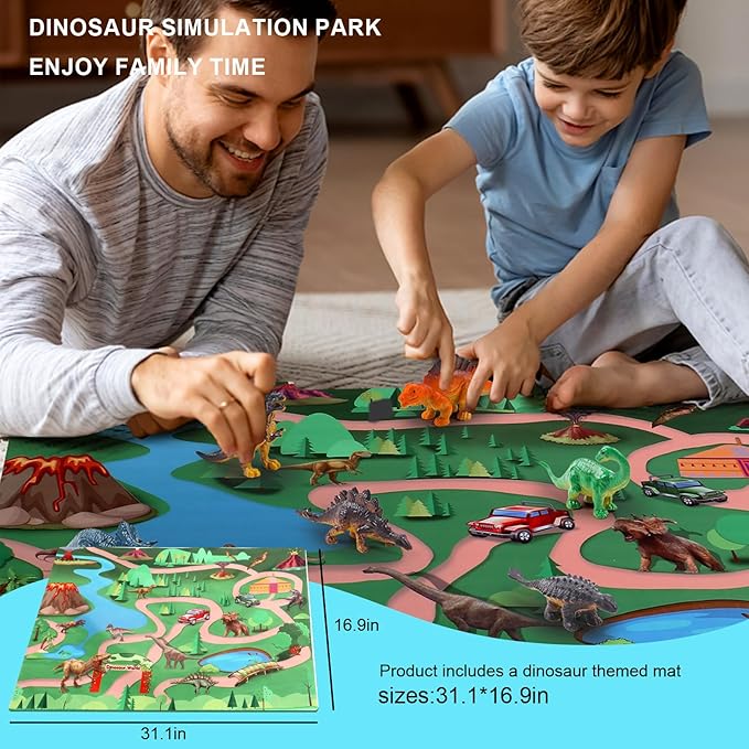 - 💥【Jumbo Dinosaur Play Mat】Our bath bombs set comes with a large size dinosaur themed mat that allows the dinosaurs to simulate the world of dinosaurs on the mat, which greatly stimulates children's imagination. Perfect as an early childhood learning toy for kids. Our dinosaur mat are made of soft peach skin velvet texture, not thin PVC. This mat is big enough for 2 to 4 players to spend a good time together. At the same time, it can also be washed with water, which is not as easy to break as others.Our designers have chosen a fun cartoon Jurassic as the theme with bright colors. Play Mat Dimensions: 31.1" x 16.9".