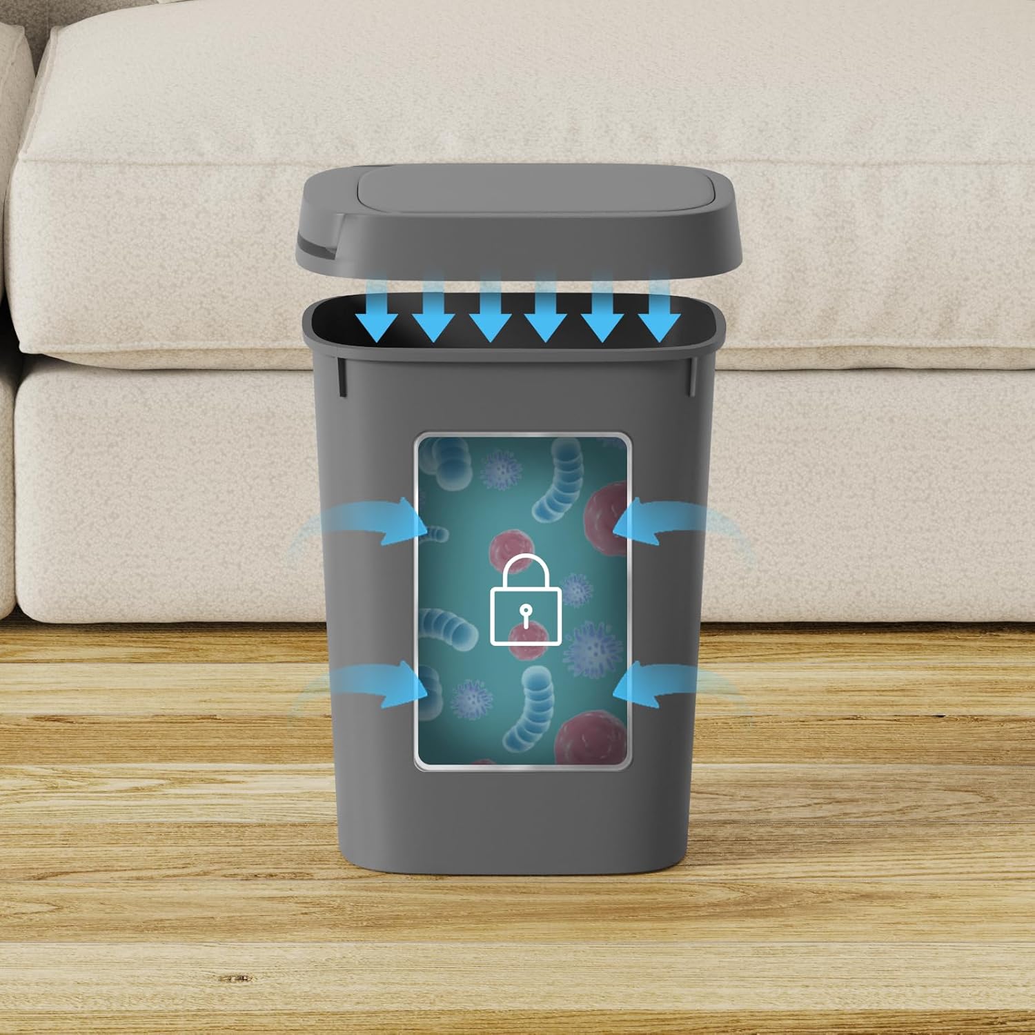 - KEEP YOUR SPACE FRESH- This small trash can with lid works great, providing a secure barrier to keep pets out of the trash and traps smell inside, ensuring your space always smells fresh and clean.