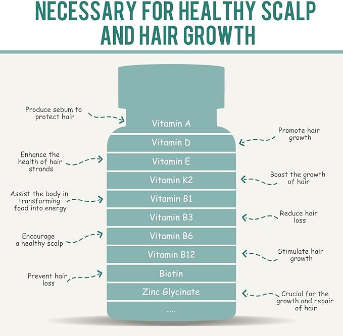 Hair Growth Supplements,Visibly Thicker Hair,Hair Growth Vitamins for Women and Men - 2 Month Supply(120 Capsules), White